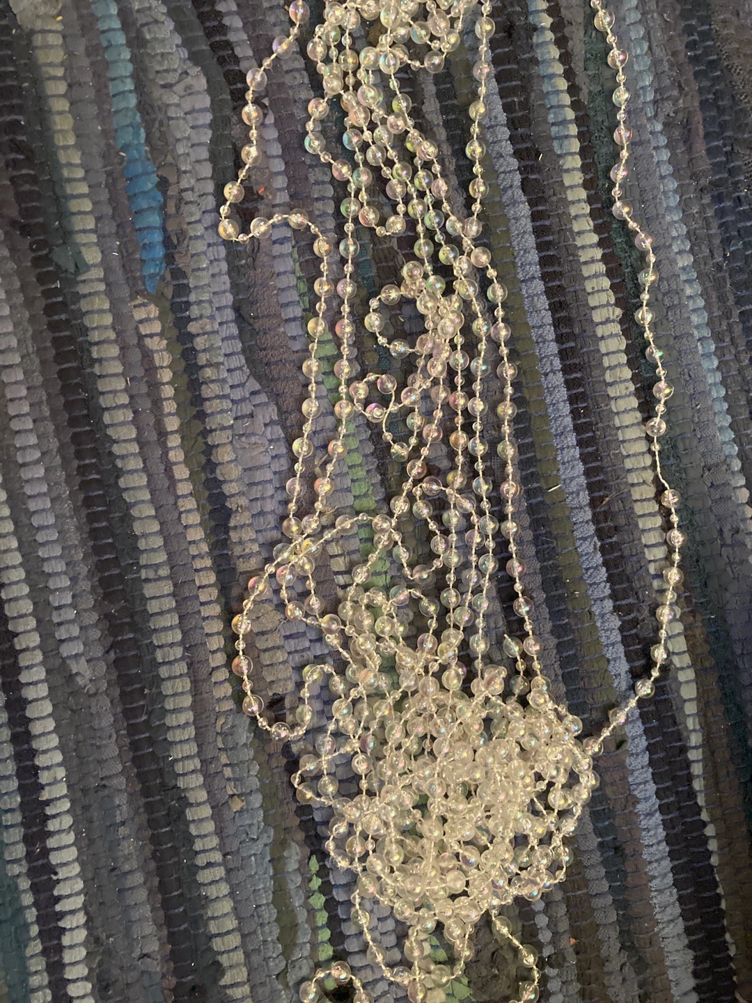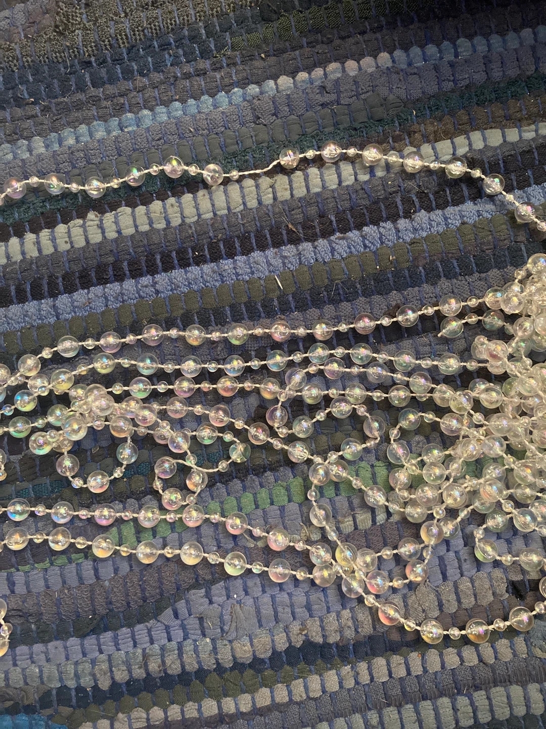 This is a strand of clear, iridescent beads. It's perfect for decorating for holidays or special events.