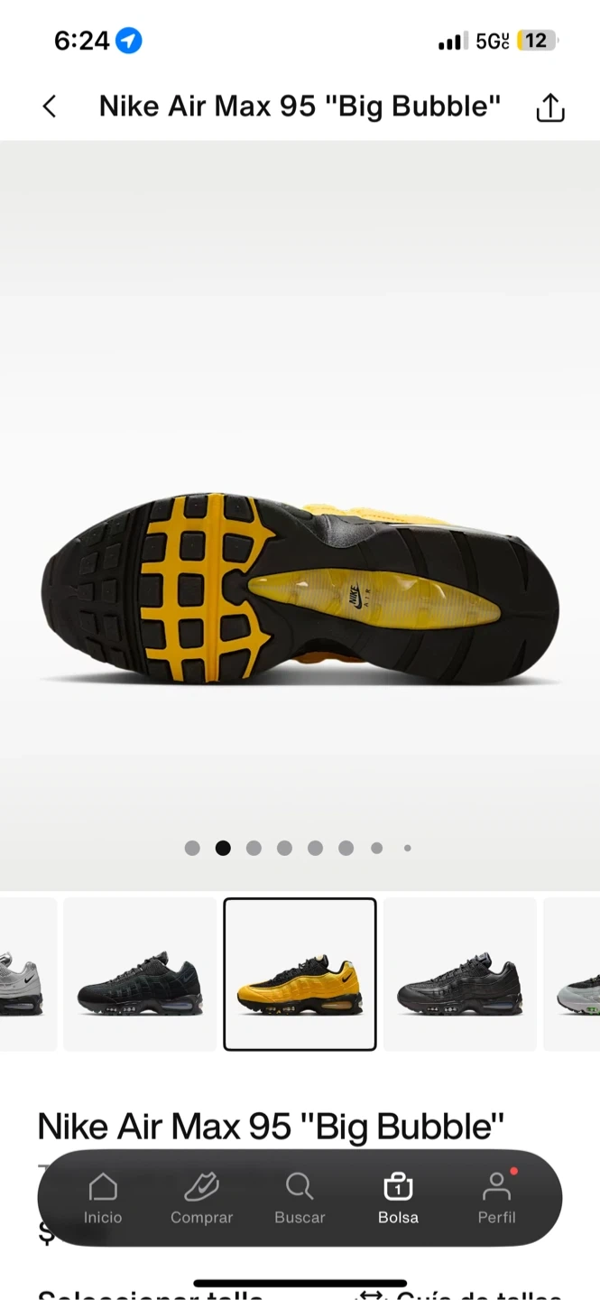 These are Nike Air Max 95 "Big Bubble" sneakers in yellow and black. They feature the visible Air Max cushioning unit. This shoe's design is inspired by the human body, with a focus on the midsole's 'bubble' air unit.