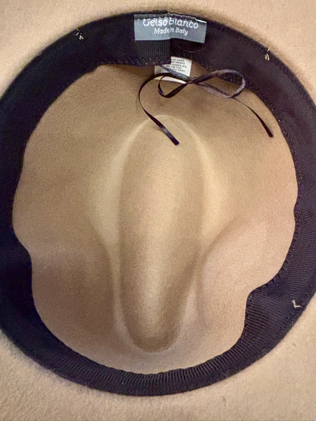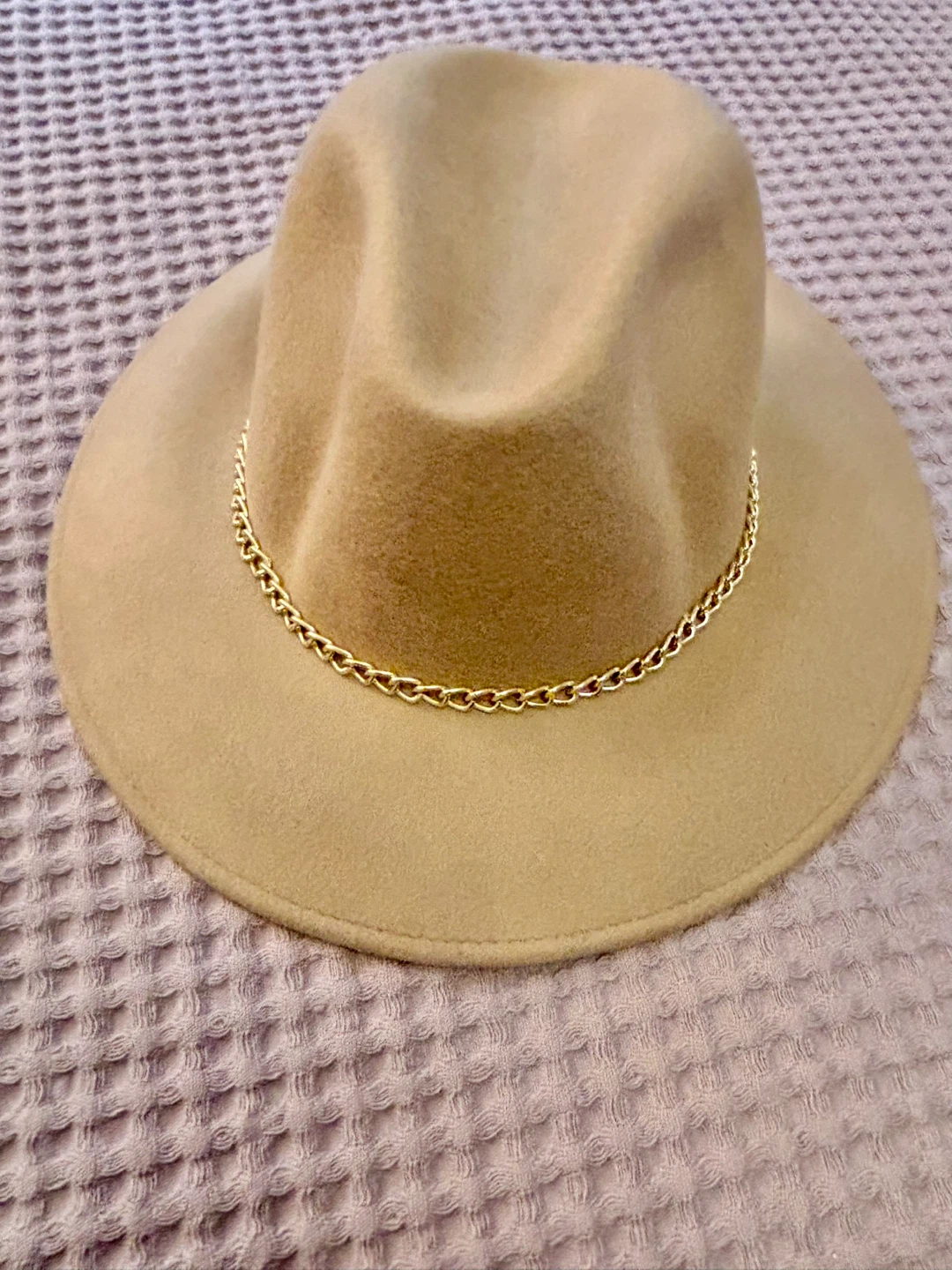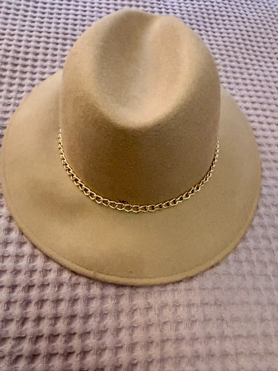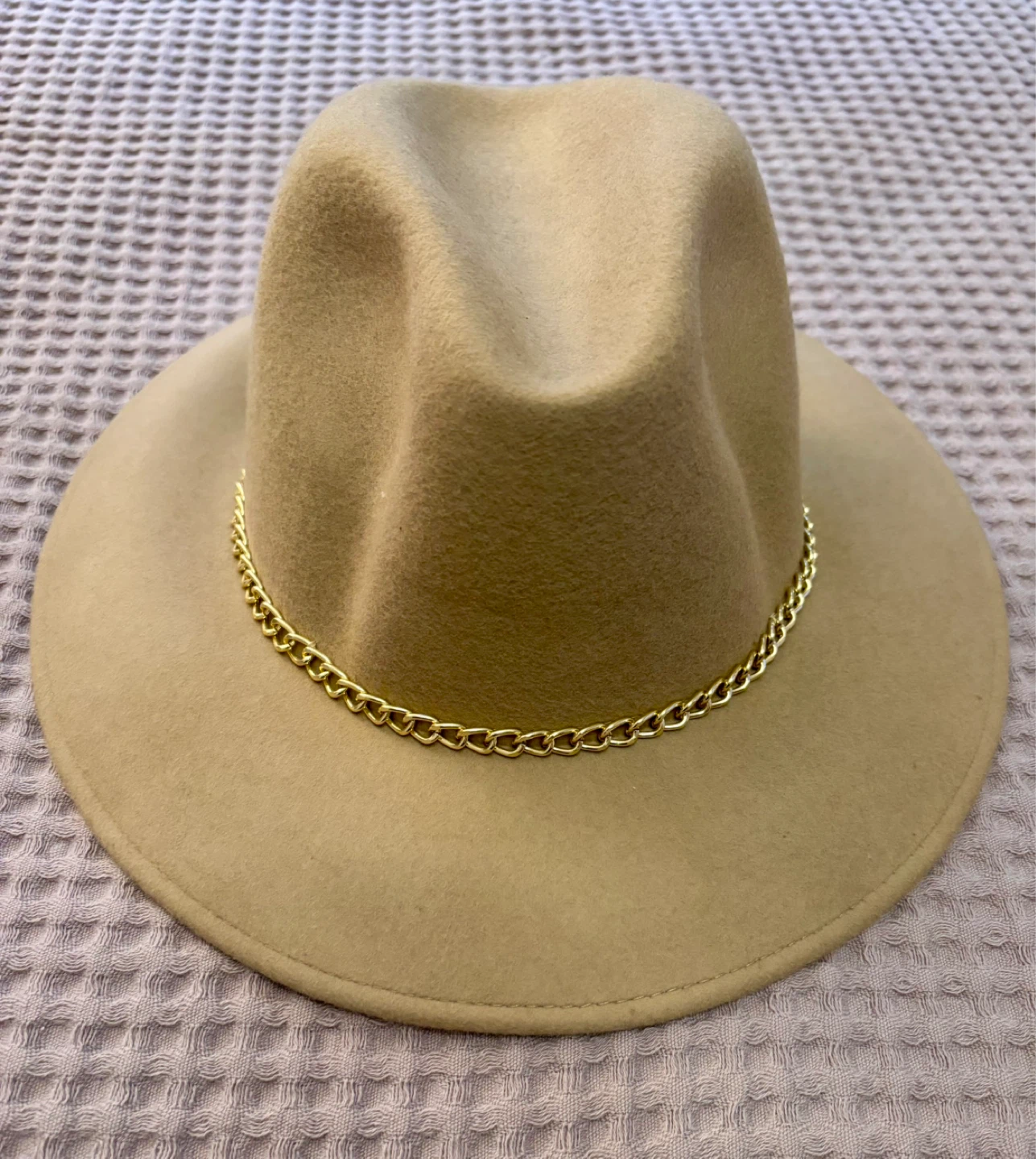 Gelso Bianco Tan Wool Fedora Hat with Gold Chain Accent