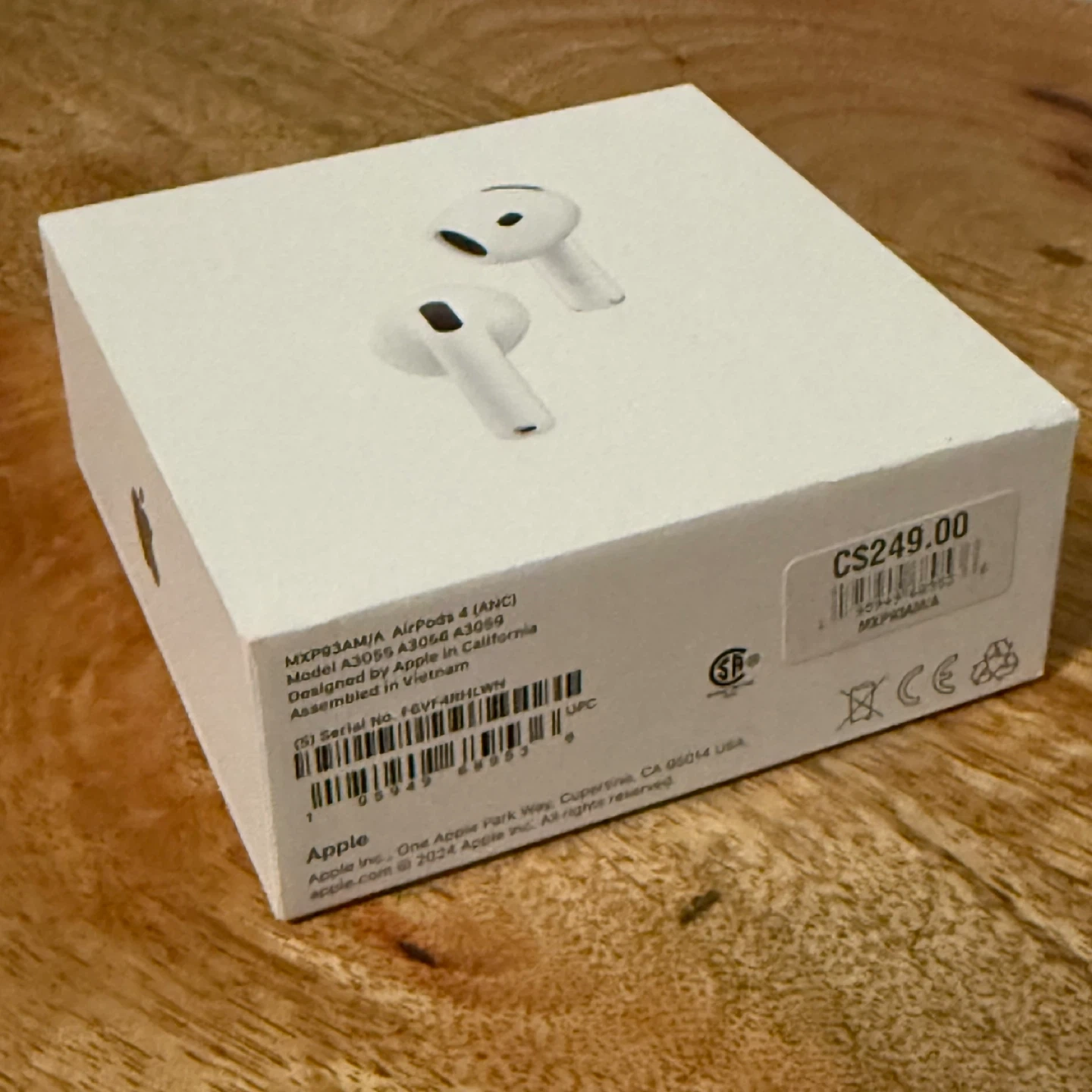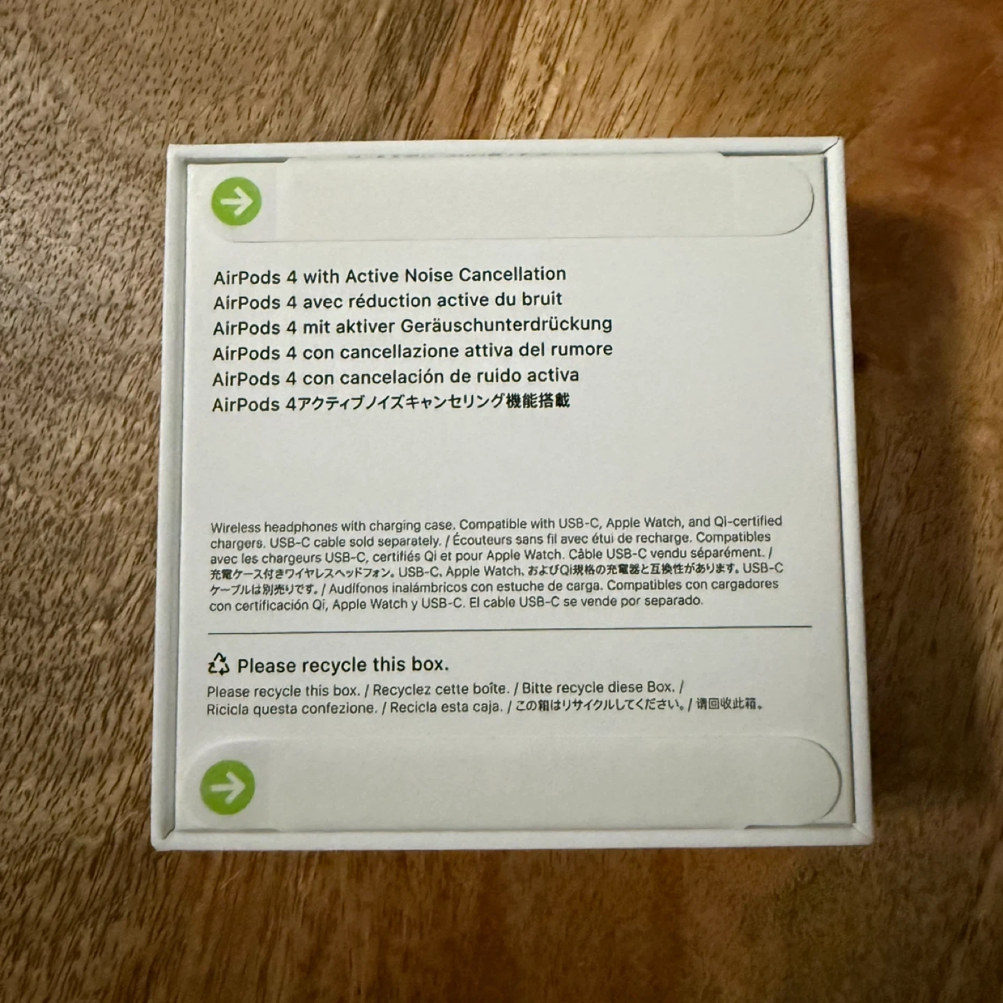 Apple AirPods 4 with Active Noise Cancellation and charging case. Compatible with USB-C, Apple Watch, and QI-certified chargers. USB-C cable sold separately. (Box is unopened but can be opened to view product if money is exchanged)