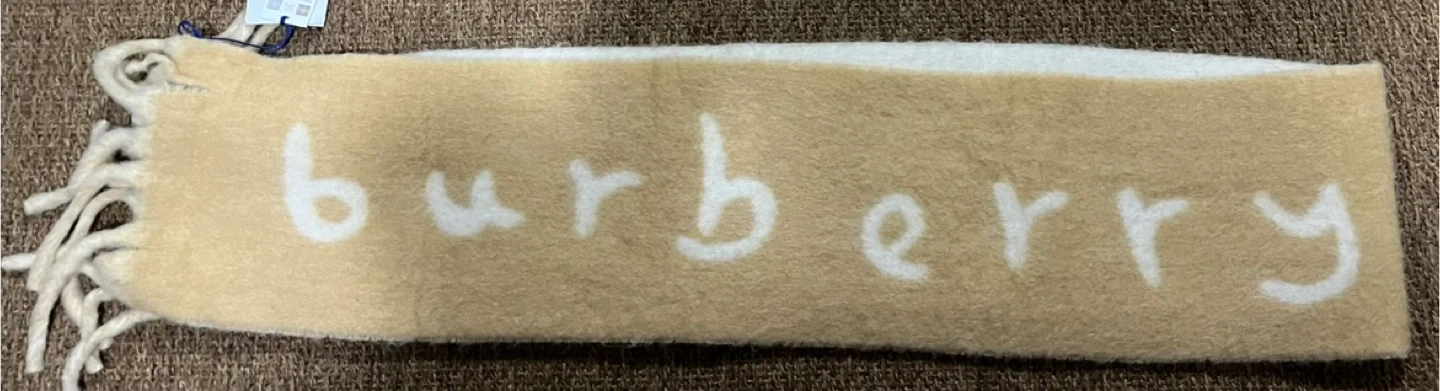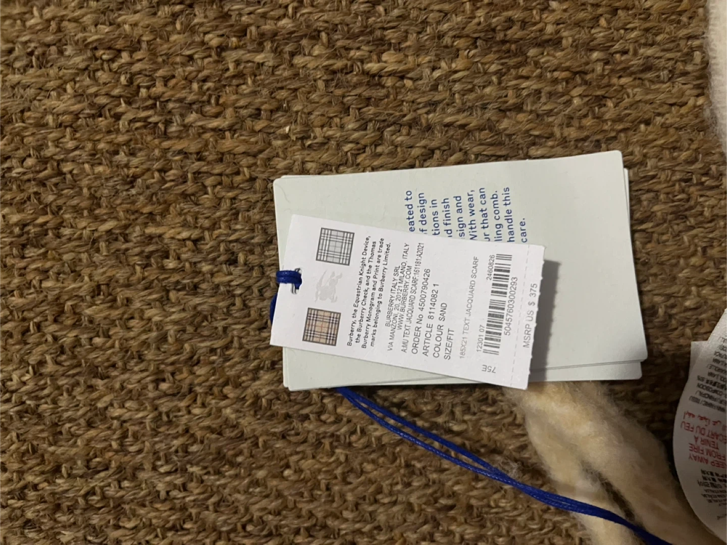 This Burberry scarf is made from a wool blend jacquard material. It features the Burberry logo in a contrasting color. The scarf is designed for both warmth and style.