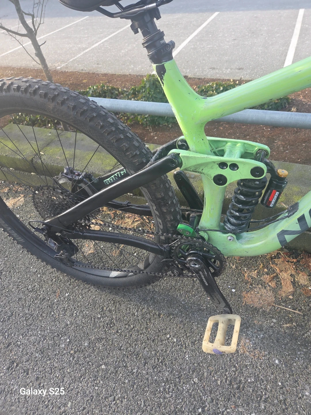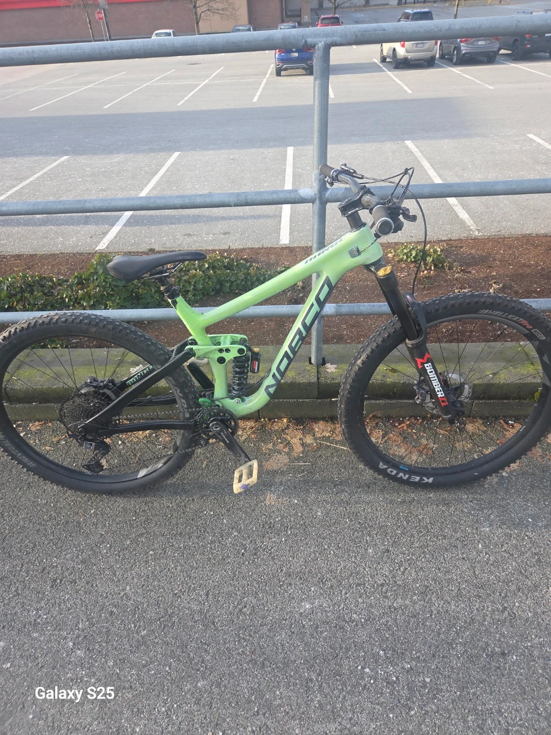 Full suspension Norco with carbon fiber frame. It's got Marzocchi Bomber Z1 front forks and Bomber rear suspension. Hydrolic seat post also.