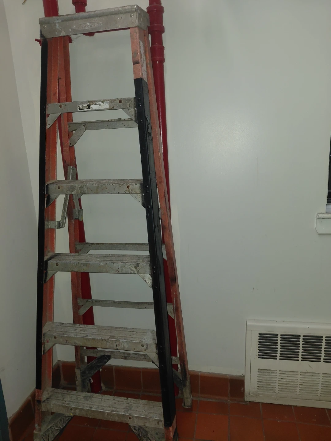 This is a Werner Heavy Duty 6-step step kadder It's constructed from aluminum and has been used but is vety strong for painting or handyman projects. . This ladder's dimensions are 72 inches tall when open. This is best for short people who are capable of climbing ladders to get the job done. This was used to paint murals and Artwork all over NYC and Long Island. Originsl price was $290.00 last year