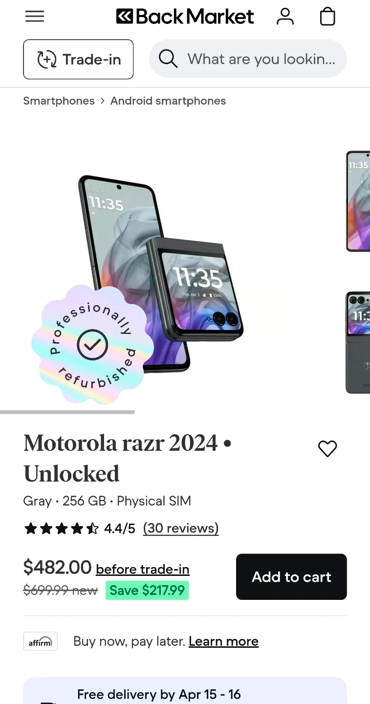 Motorola Razr 2024 Folding Phone 256gb. Unlocked.