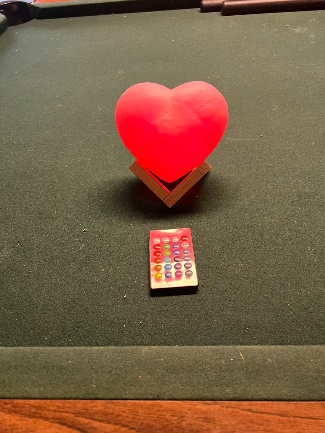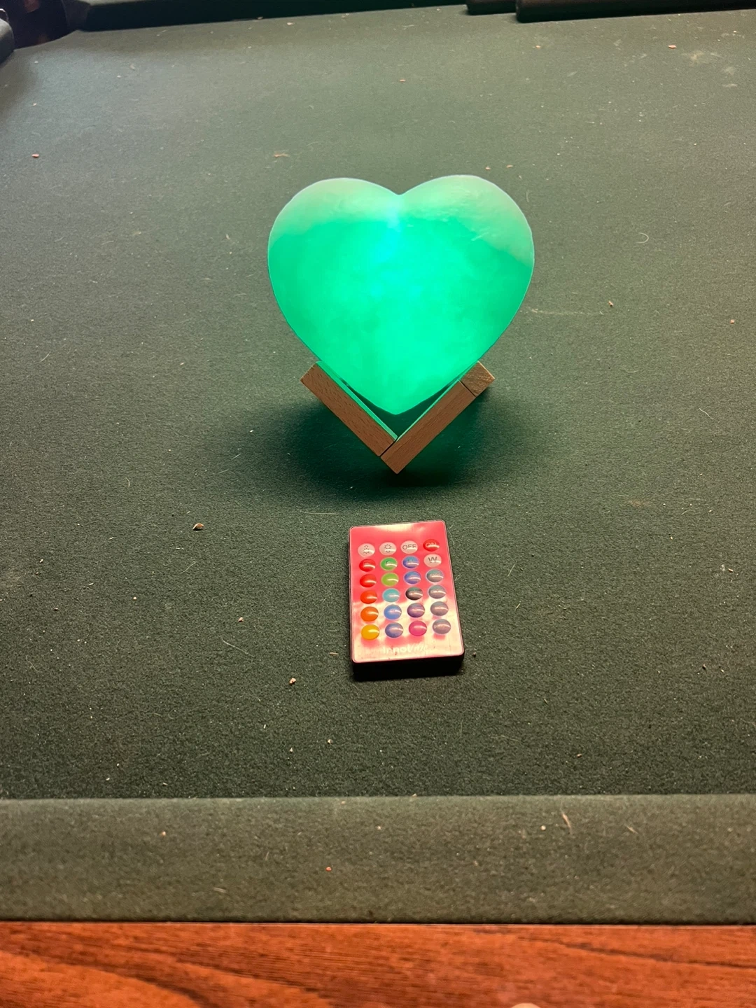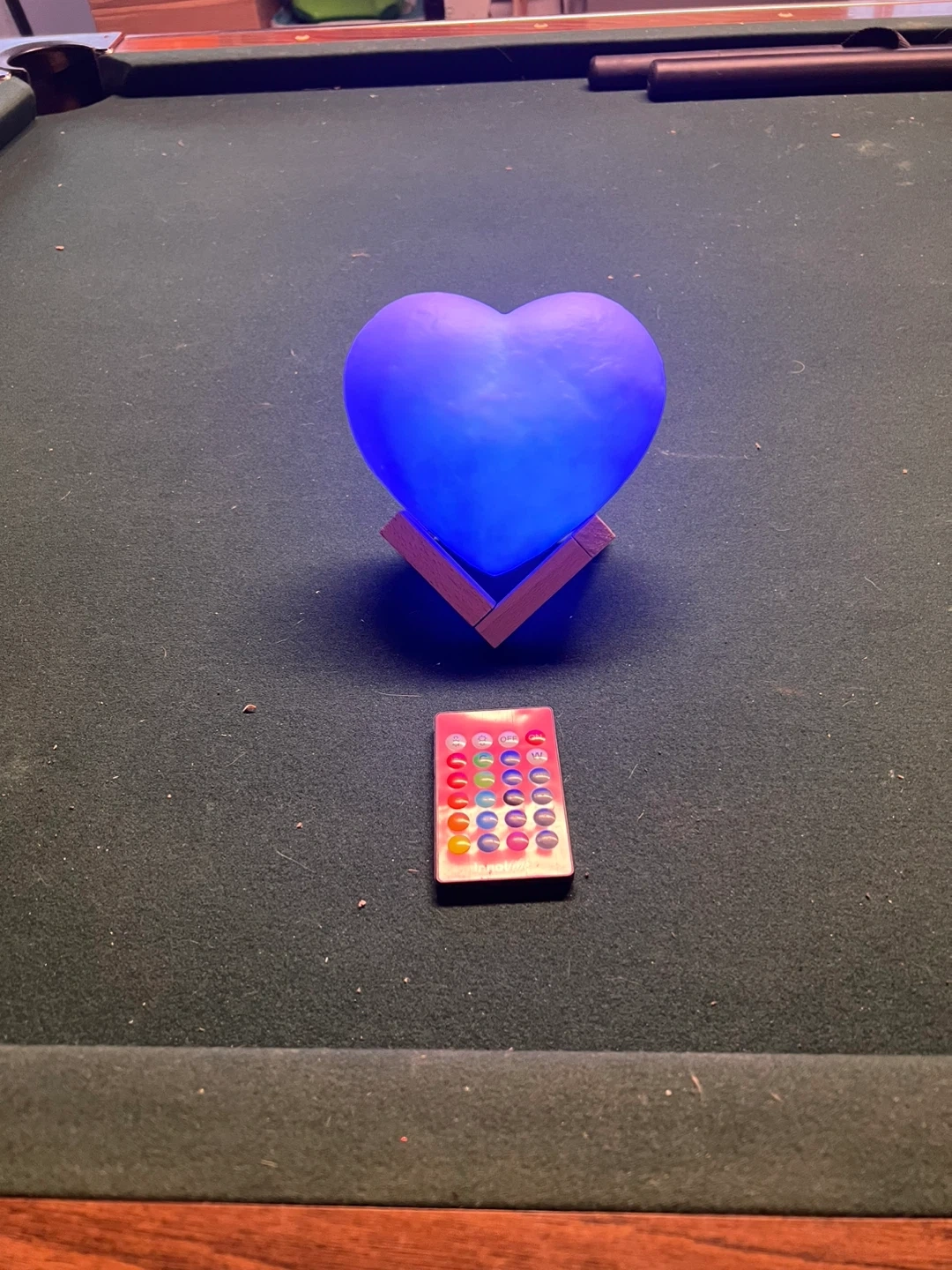 This is a heart-shaped LED night light. It changes colors and comes with a remote control. It's approximately 6 inches wide.in excellent condition takes batteries