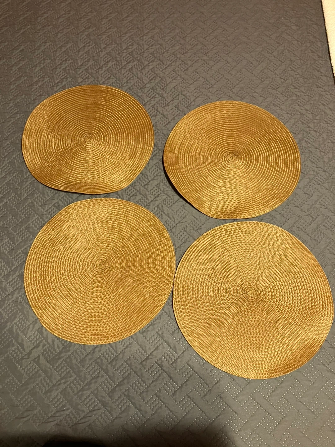 Selling a set of 4 woven placemats! They are a gold color and in great condition. Perfect for adding a touch of warmth to your dining table