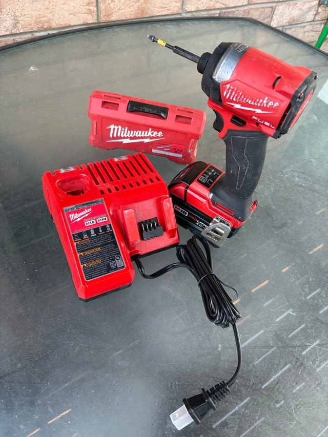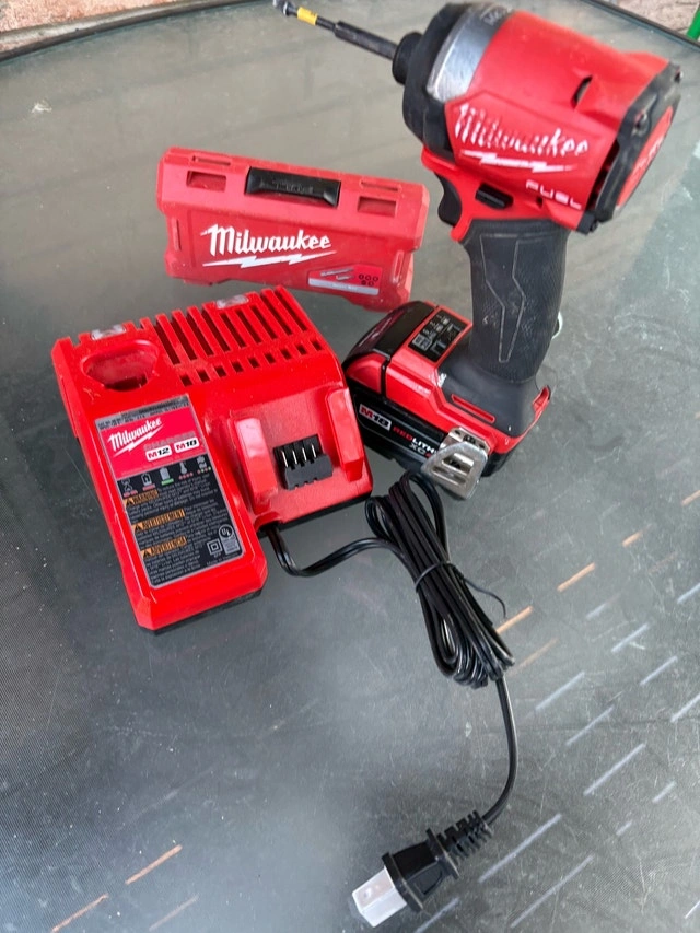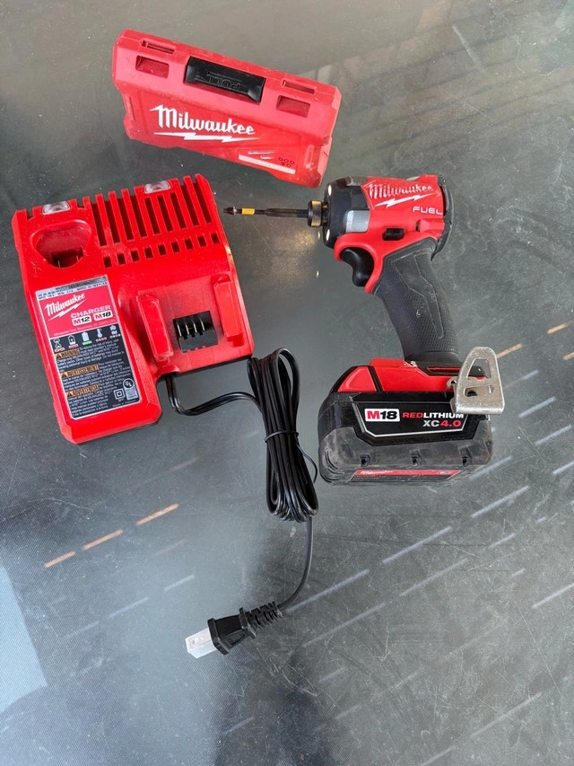 This is a used Milwaukee M18 FUEL impact driver kit, ready to tackle any job with its high-performance motor and compact design. This kit includes a 4.0 XC battery, the tool, a charger and the carrying case. It's in good condition and fully functional. Key features include: * High-power FUEL motor * Compact and lightweight design * Variable speed trigger * LED work light I'm pricing it at $220.