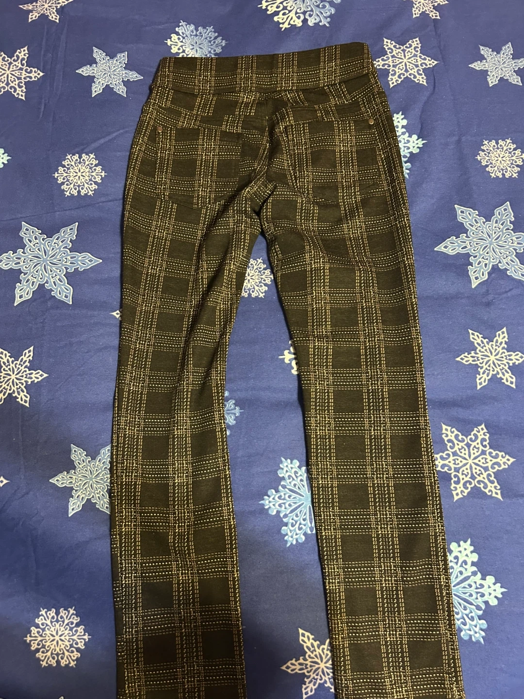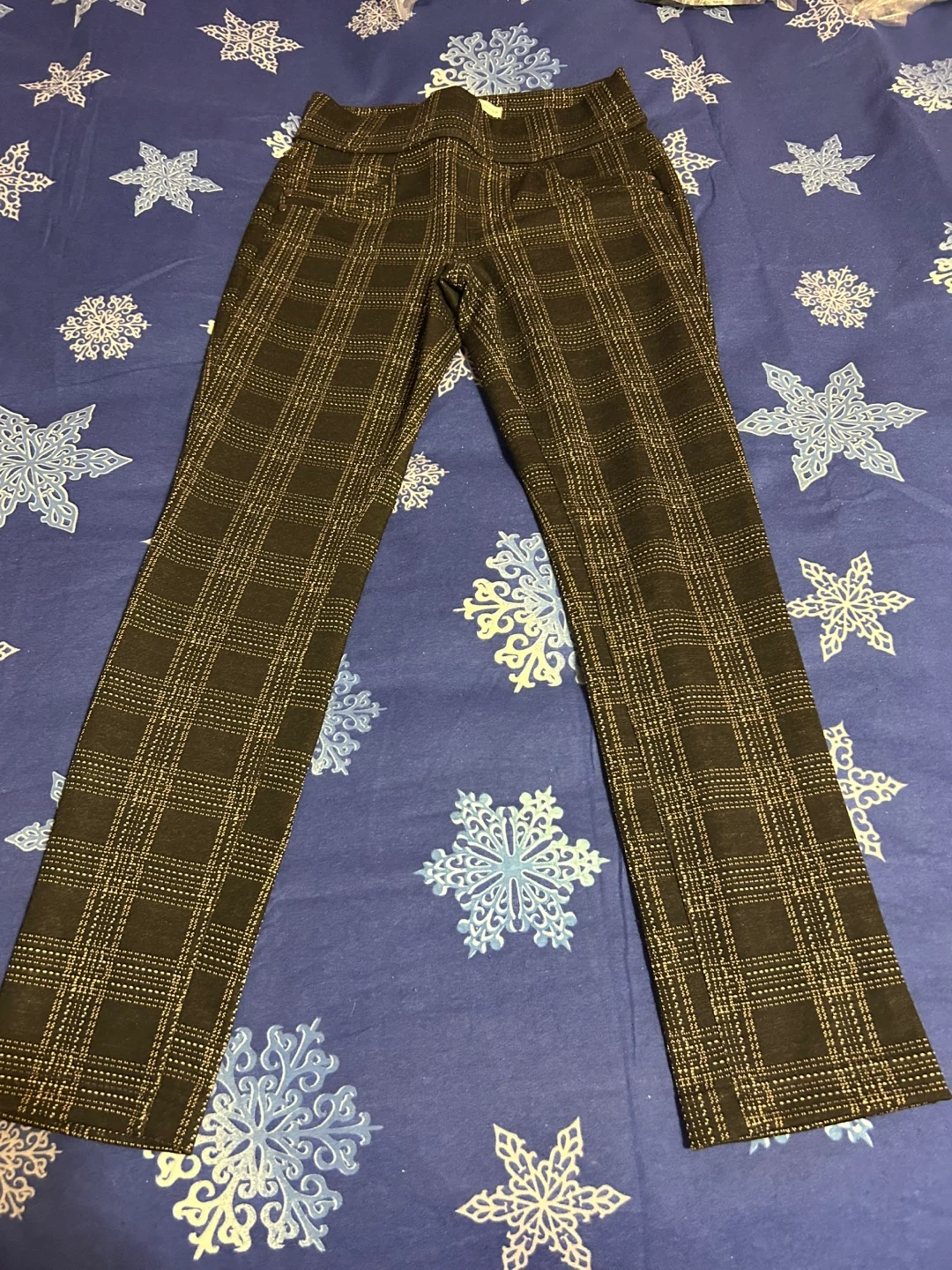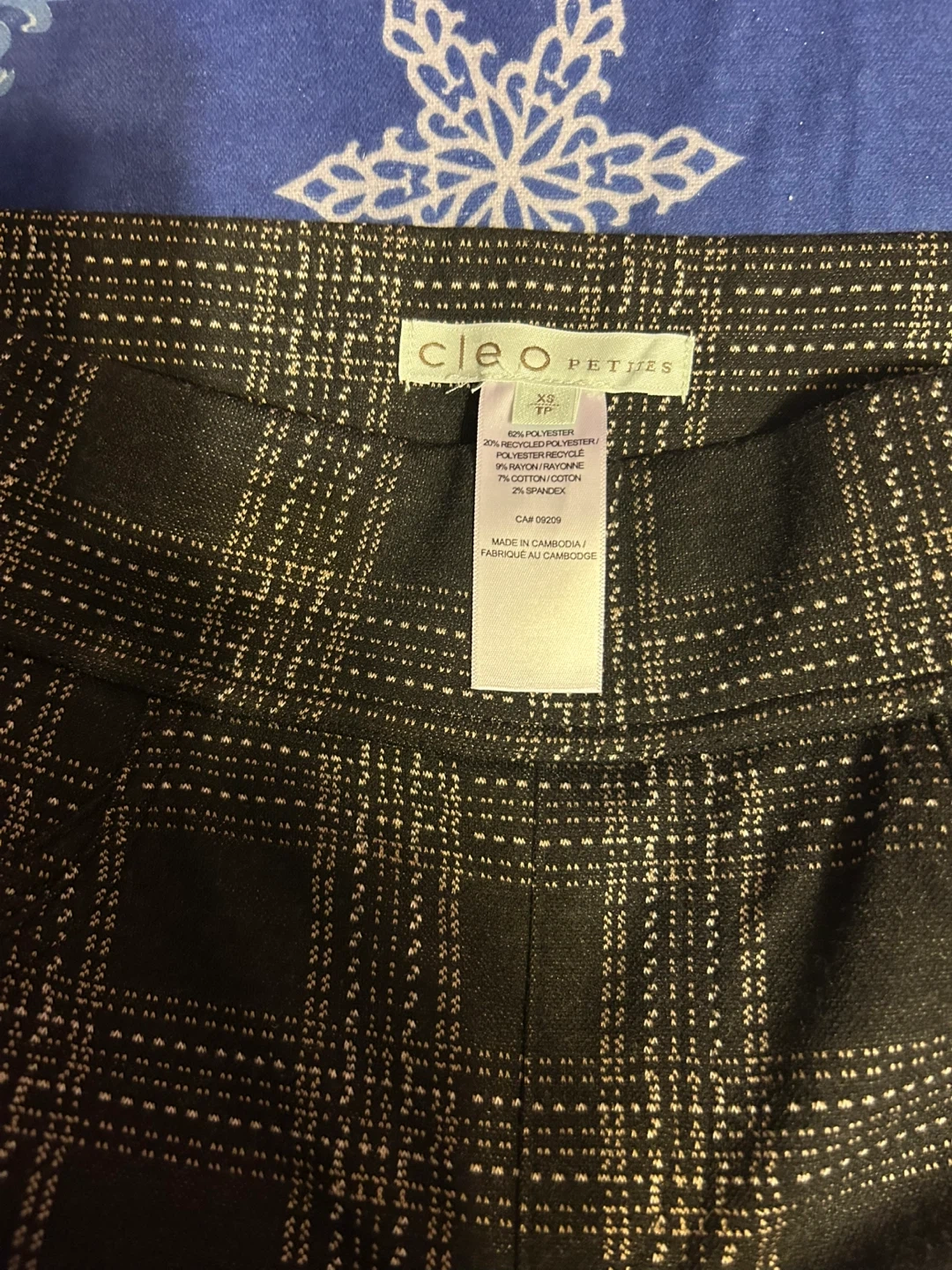 These Cleo Petites pants feature a classic plaid pattern. They're made with a blend of polyester, rayon, and spandex for comfort and stretch. Size XS.