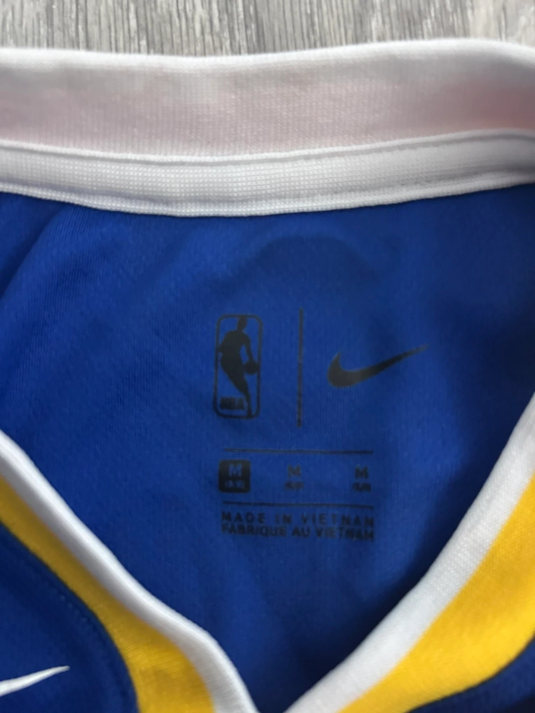 Selling a Nike Golden State Warriors jersey with Curry's number 30 on the back! It's a size M and in good condition. There are a few small marks on the shoulder, as shown in the photos.