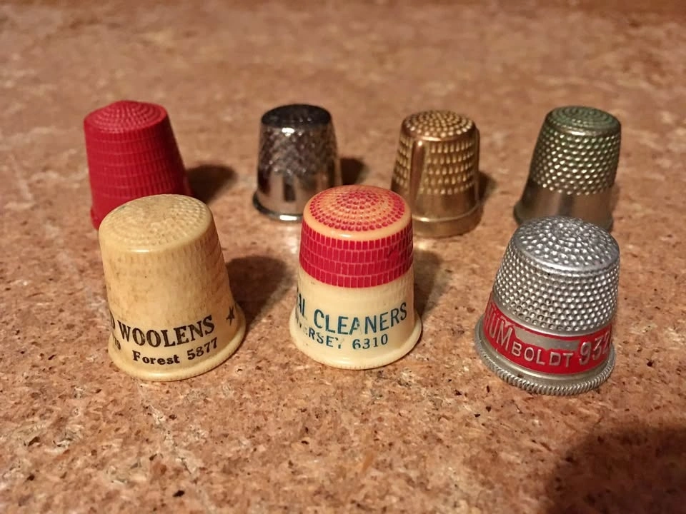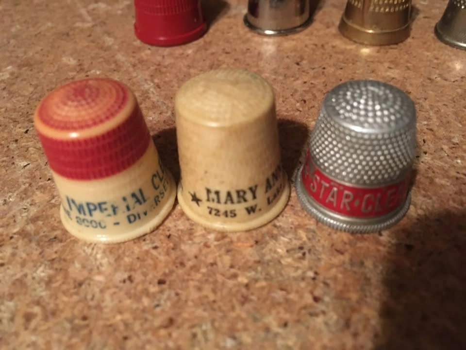 LOT OF 7 VINTAGE THIMBLES STAR CLEANERS HUMBOLDT 9321 SALZMAN IM