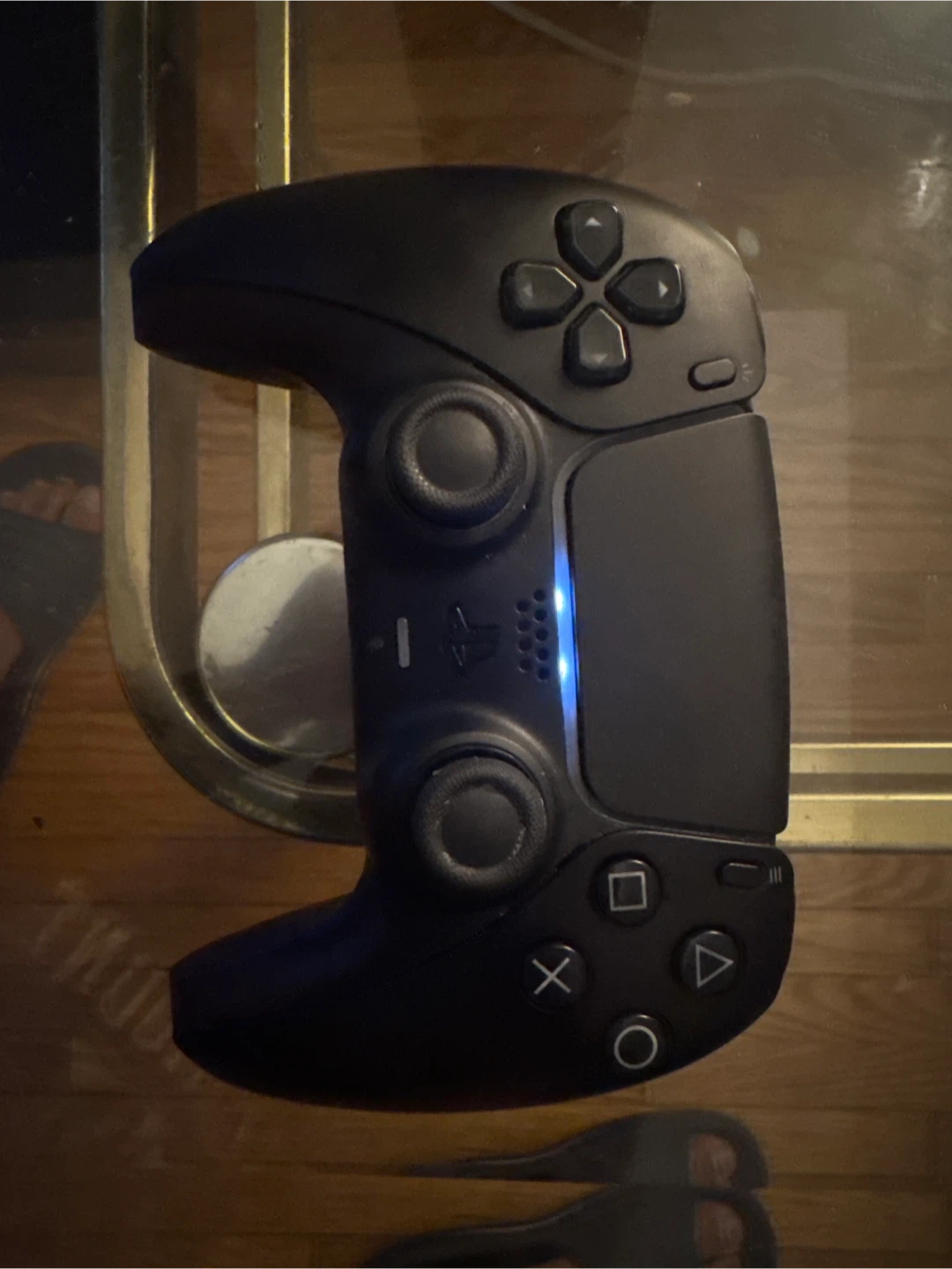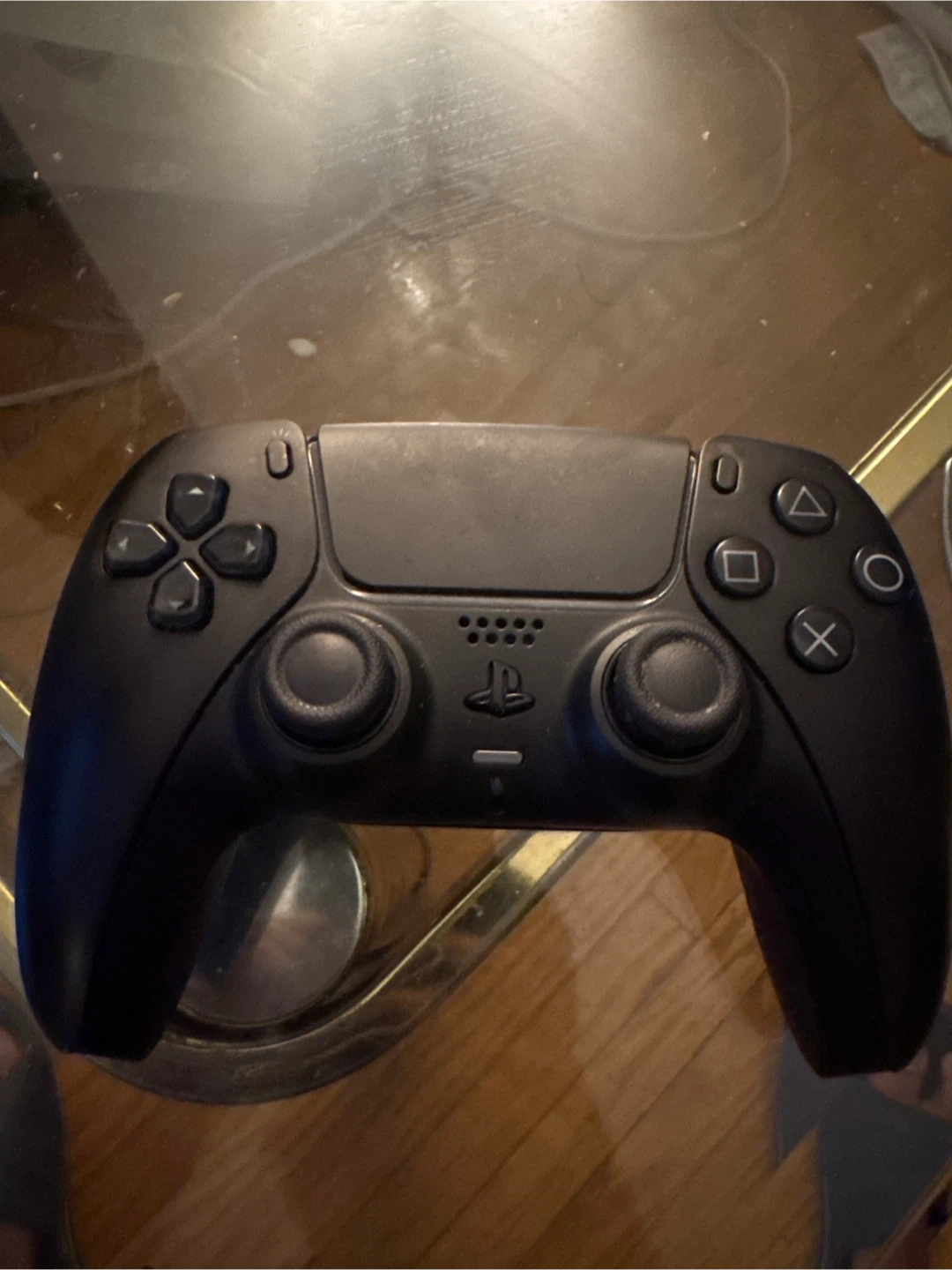 This is a black PlayStation 5 DualSense controller. It's a wireless controller for the PS5 console. It's black in colour.