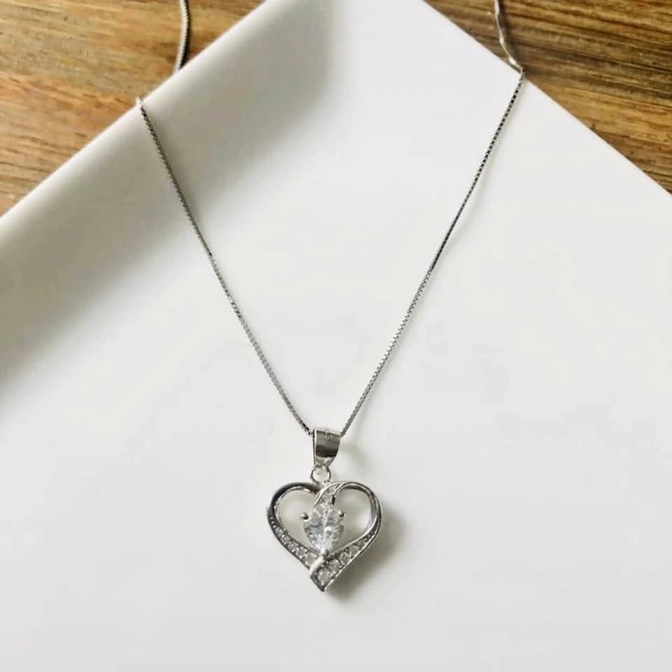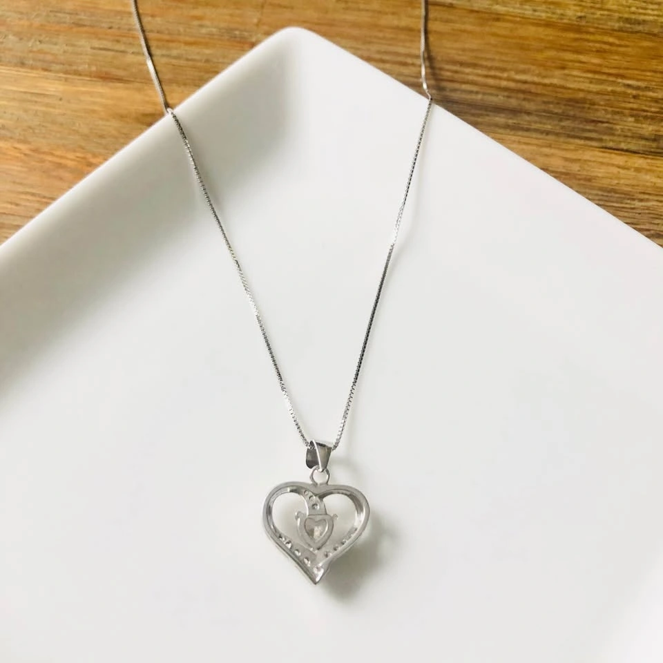 S999 Fine Silver Crystal Zircon Double Heart Shaped Pendant Neck