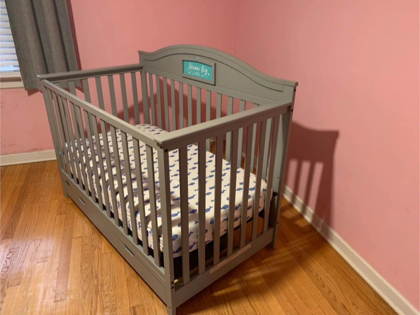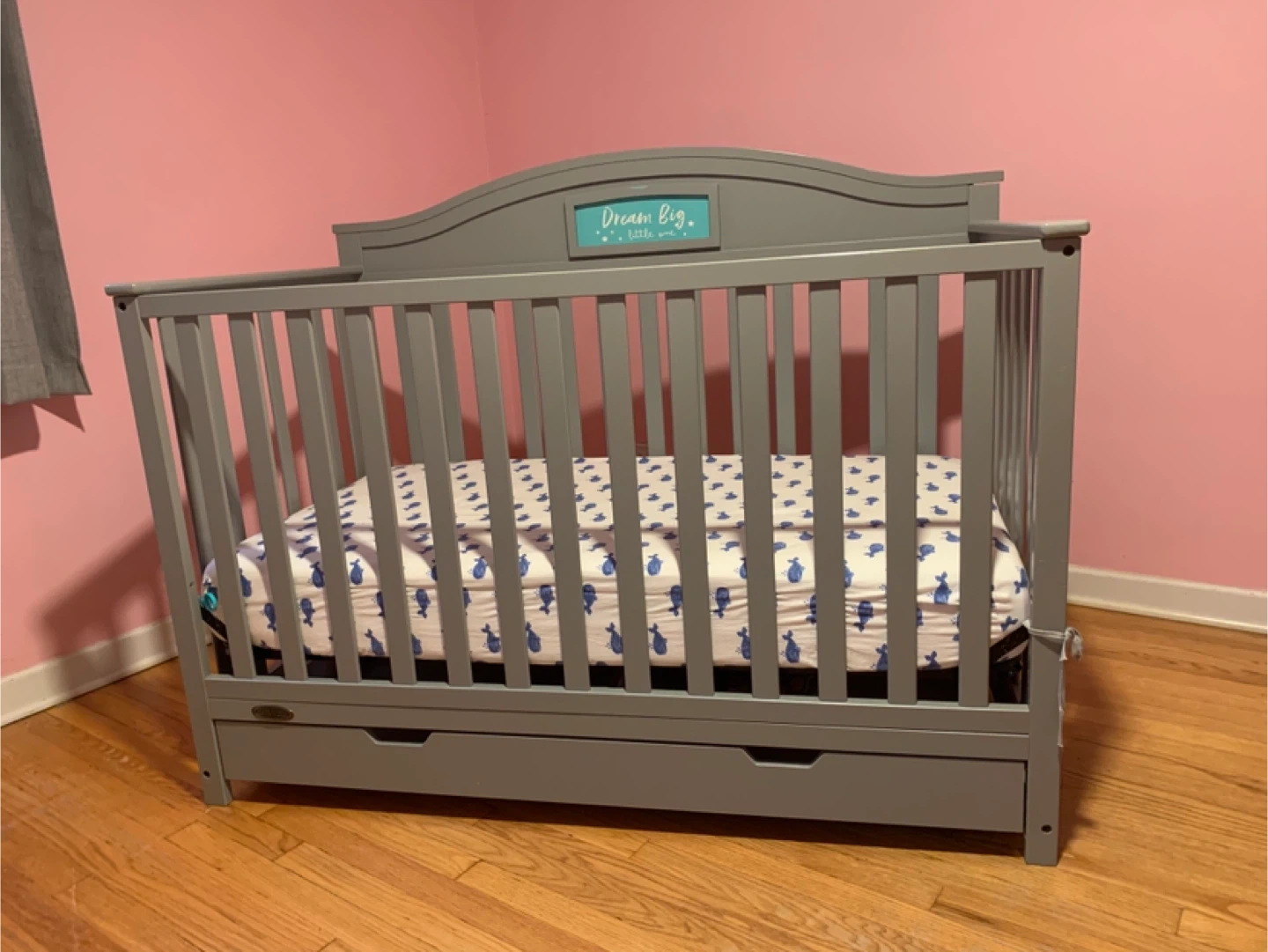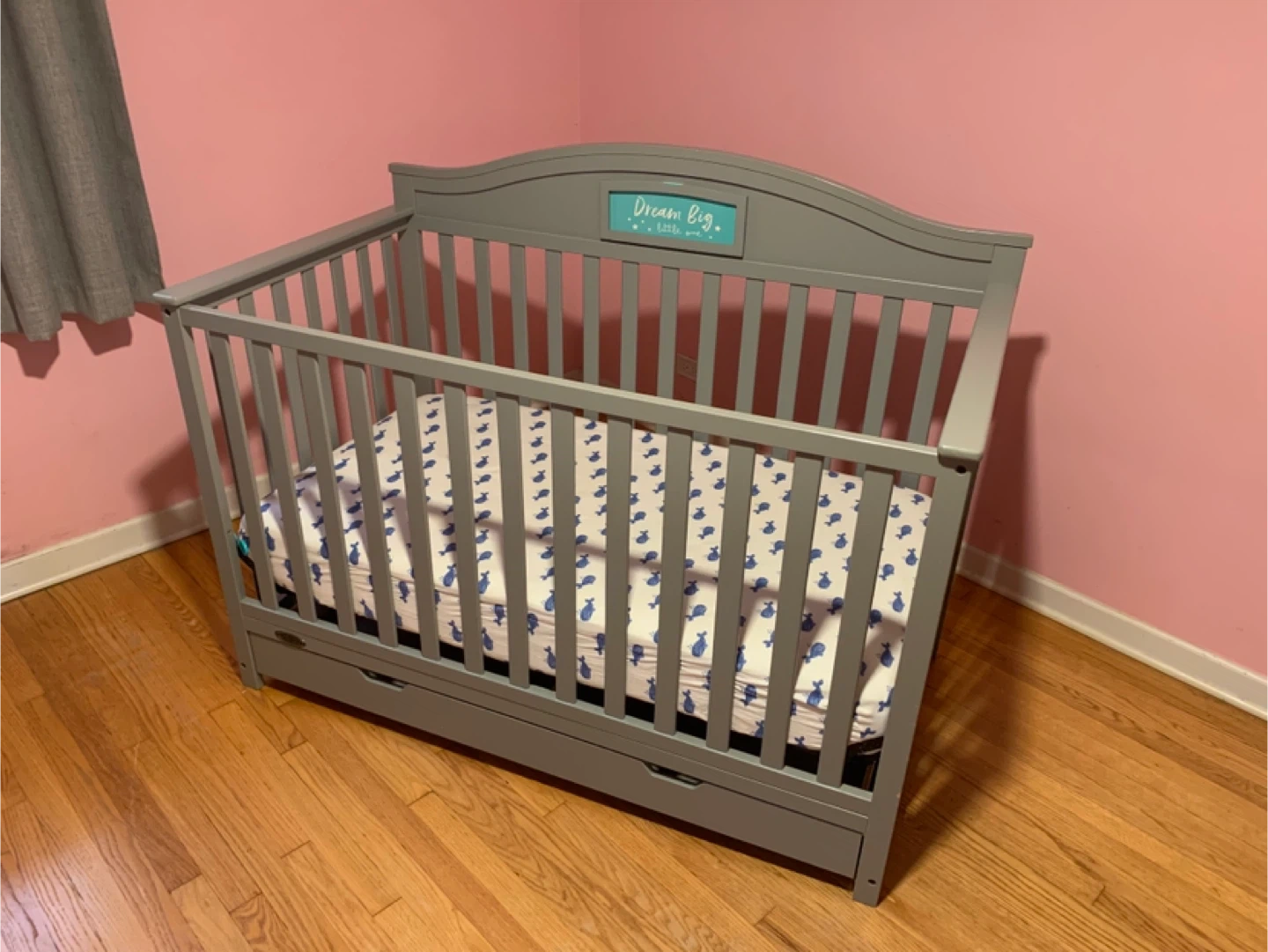 Grey Convertible Crib with Storage Drawers