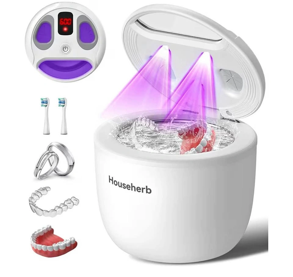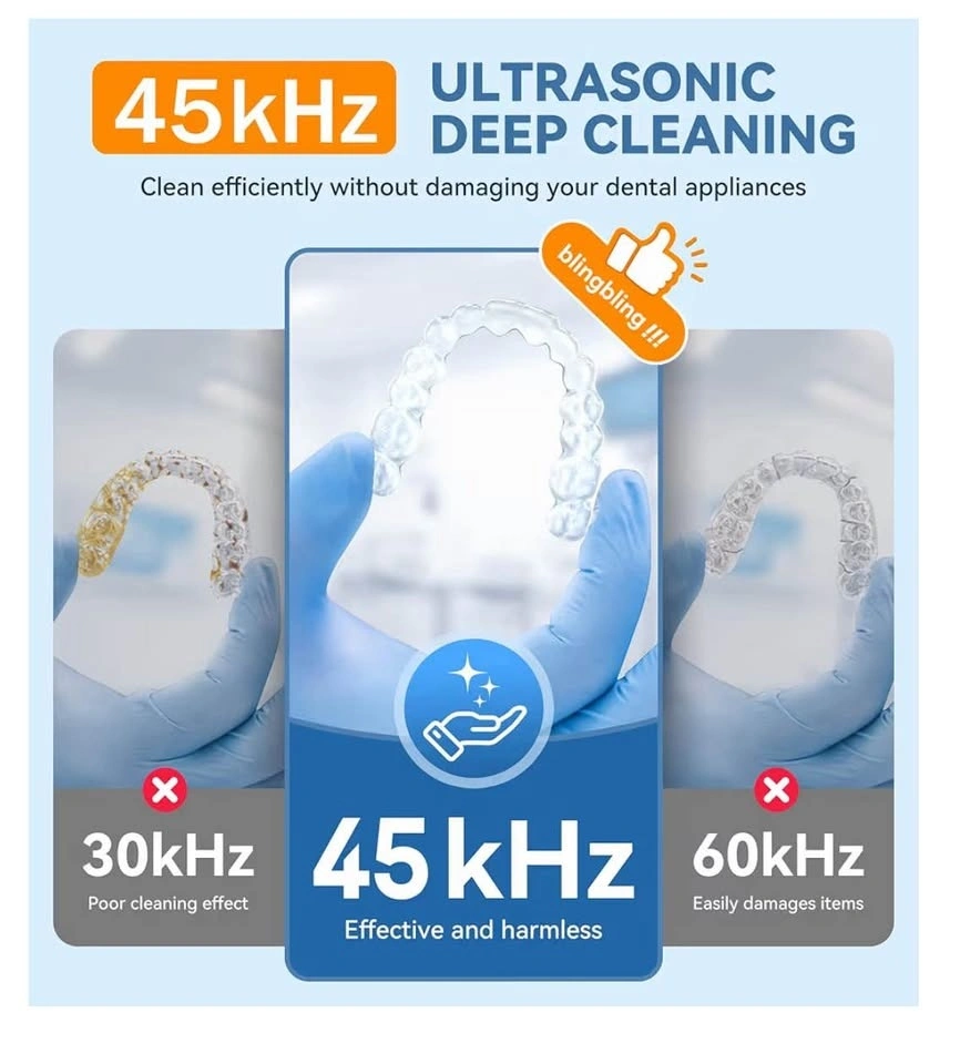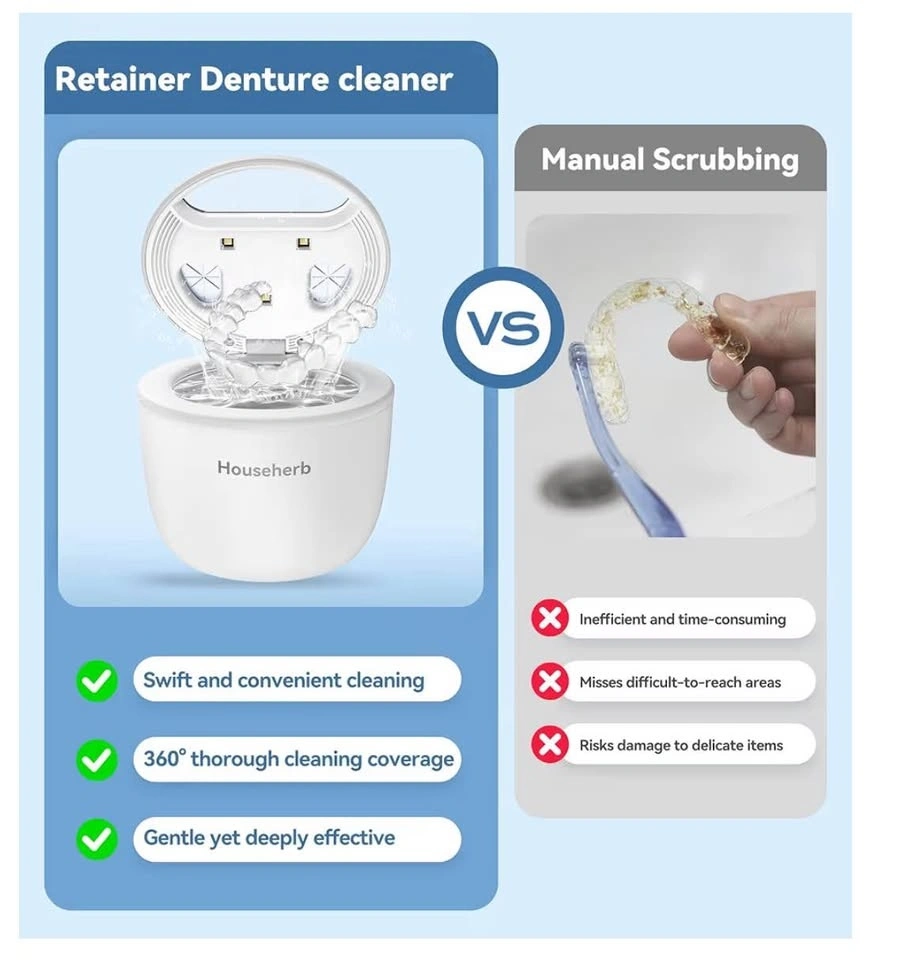 Ultrasonic Retainer Cleaner, Dental Cleaning Pod for Denture, Mouth Guard, Aligner, Night Guard, Braces, Toothbrush Heads, Jewelry, 45kHz Retainer Cleaner Machine with Digital Timer & 200ML