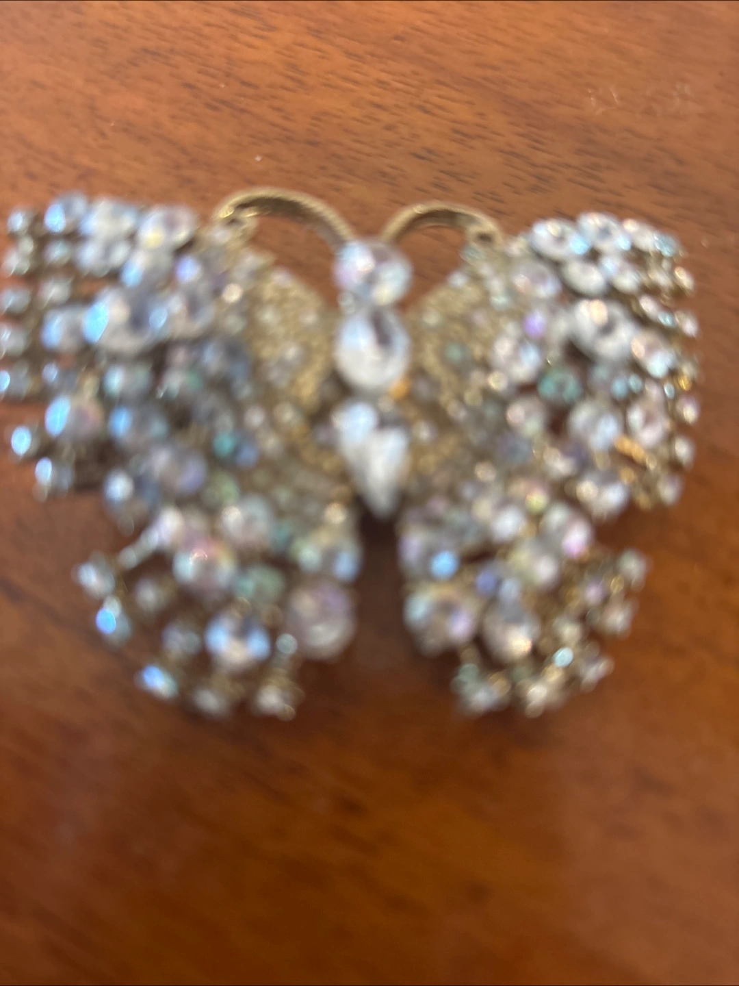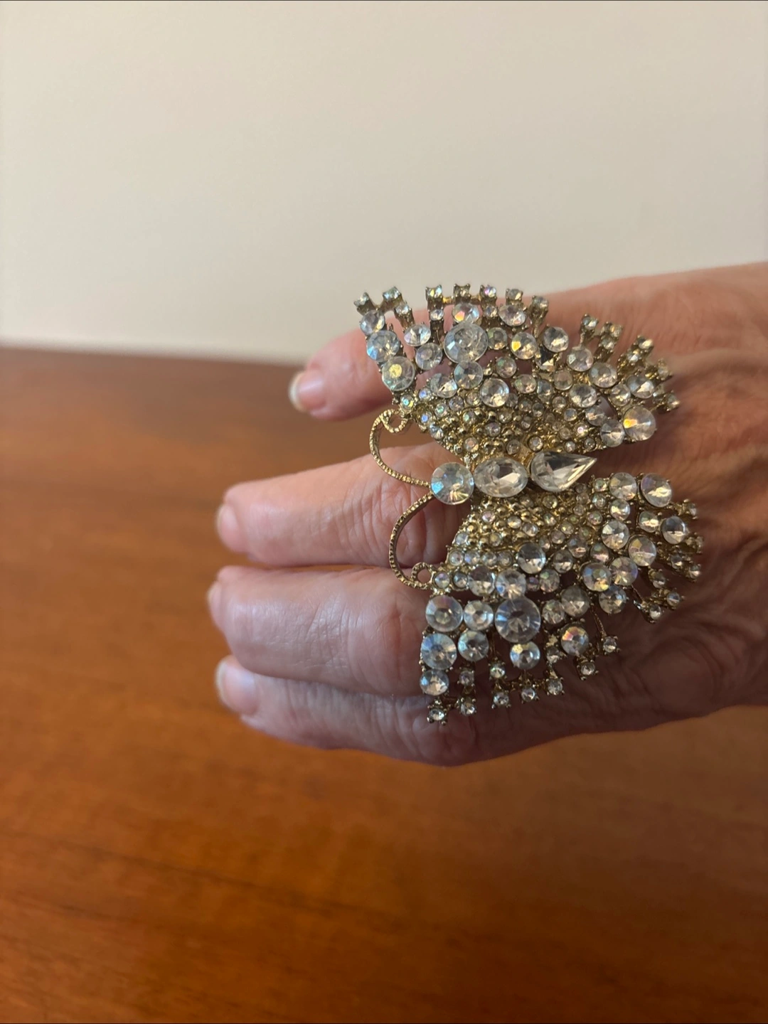 This is a beautiful butterfly ring adorned with rhinestones. It's a unique and eye-catching piece that will add a touch of sparkle to any outfit. Can be worn on one finger or 2 fingers together
