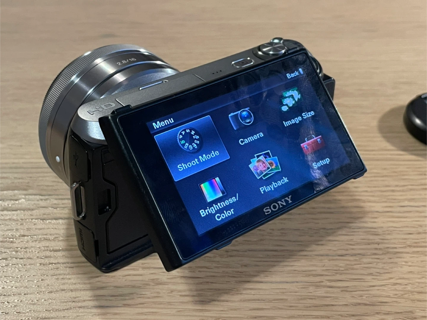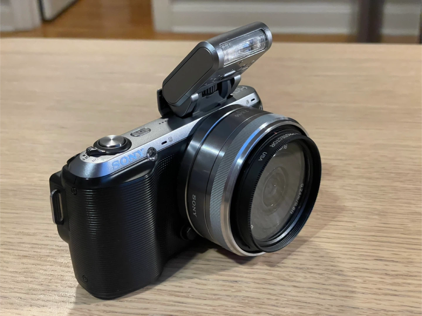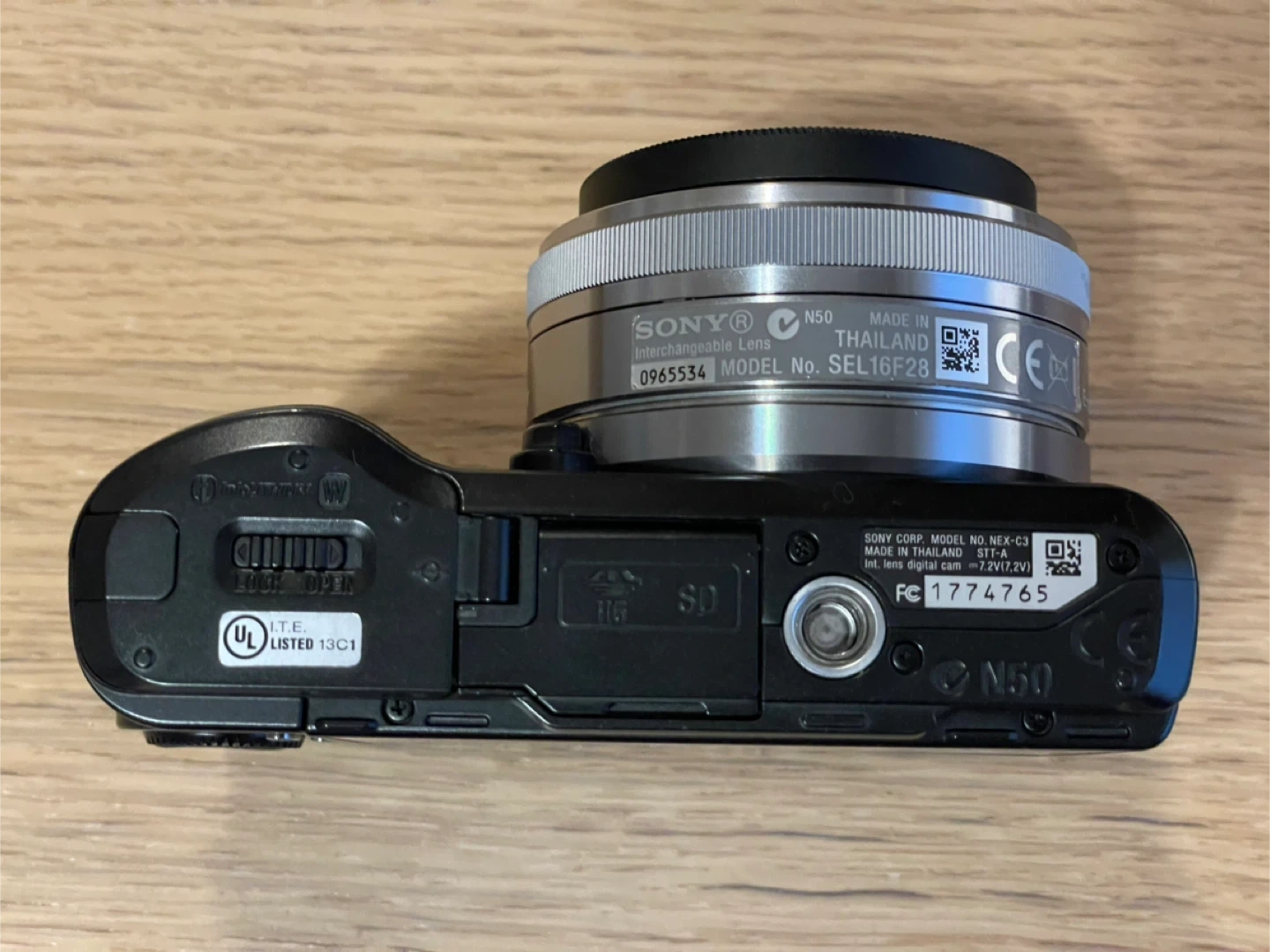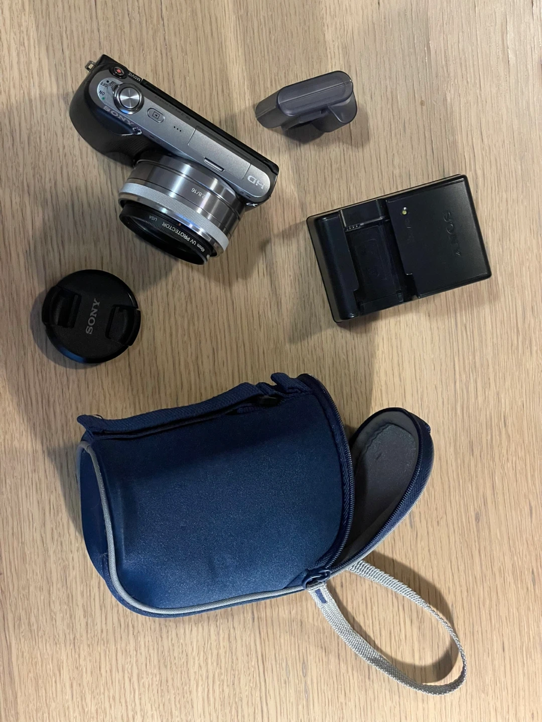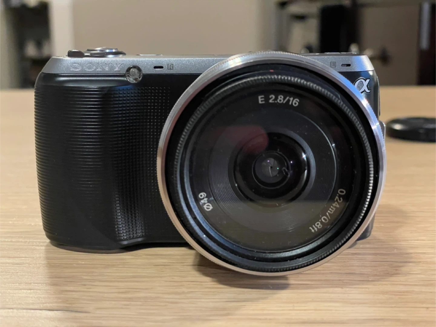 Selling a Sony NEX-C3 interchangeable lens digital camera. The lens is a Sony E 2.8/16.