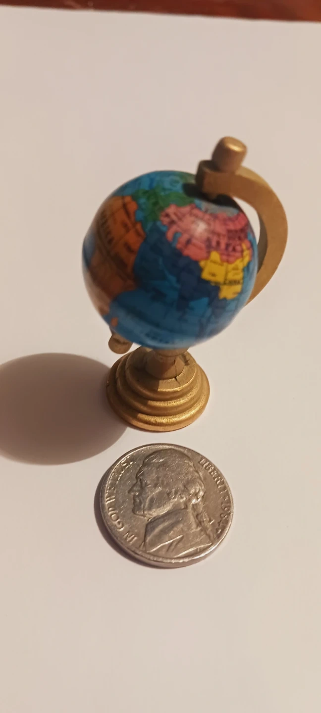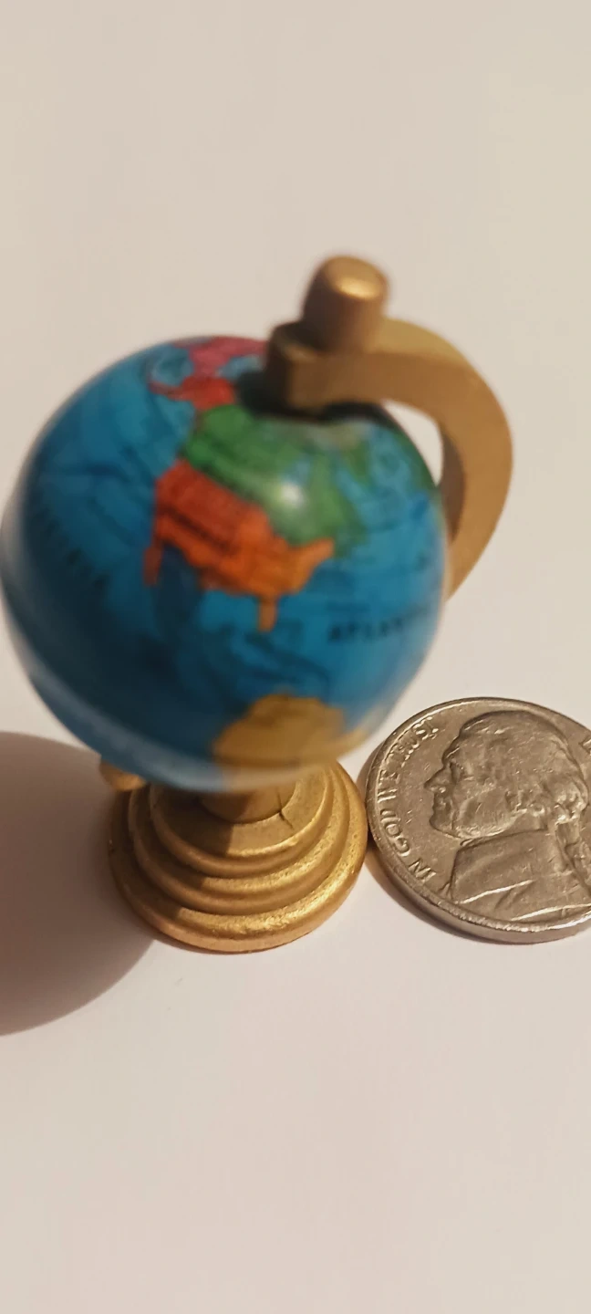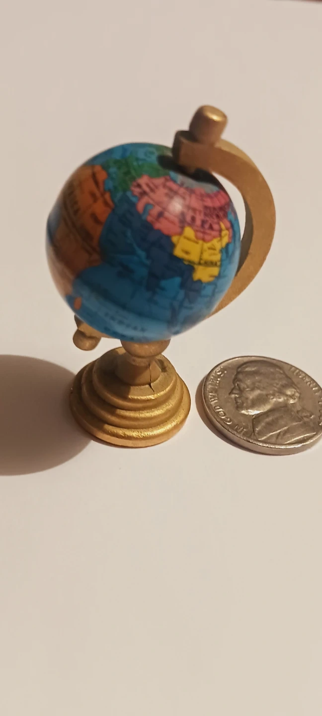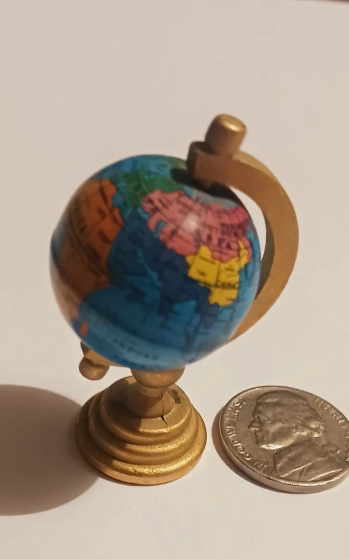 This is a cute miniature decorative globe, perfect for a desk or shelf. It's a fun way to see the world at a glance! The stand is gold tone. 2"Γ1.5". Excellent condition. ALL MY PRICES ARE NEGOTIABLE !!