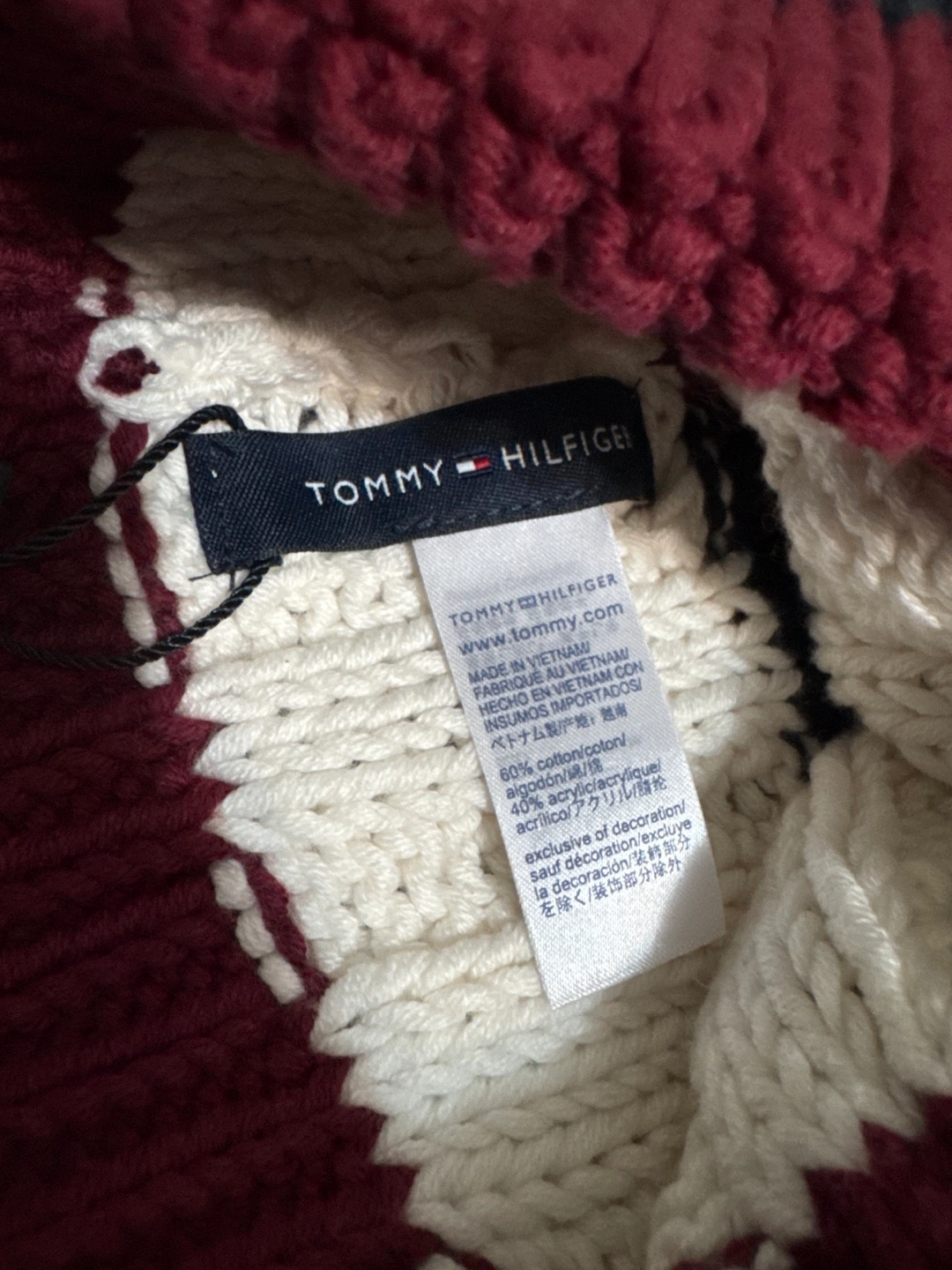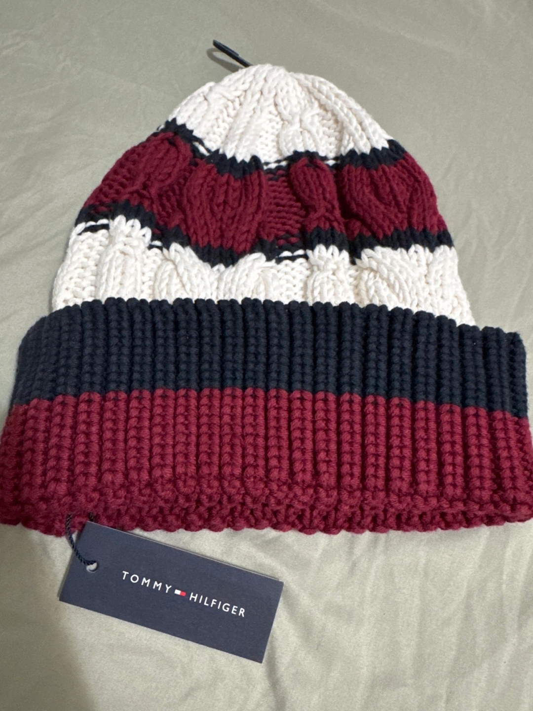 New Tommy Hilfiger Cable Knit Beanie - Burgundy, Cream, Black