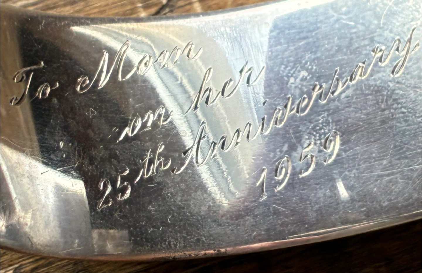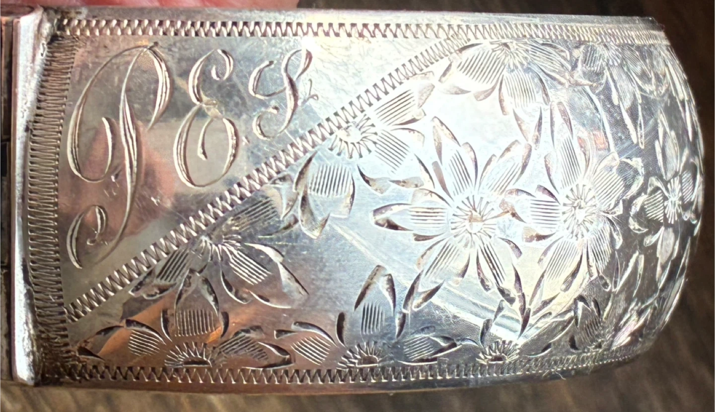 Exquisite engraving on top and plain silver on back