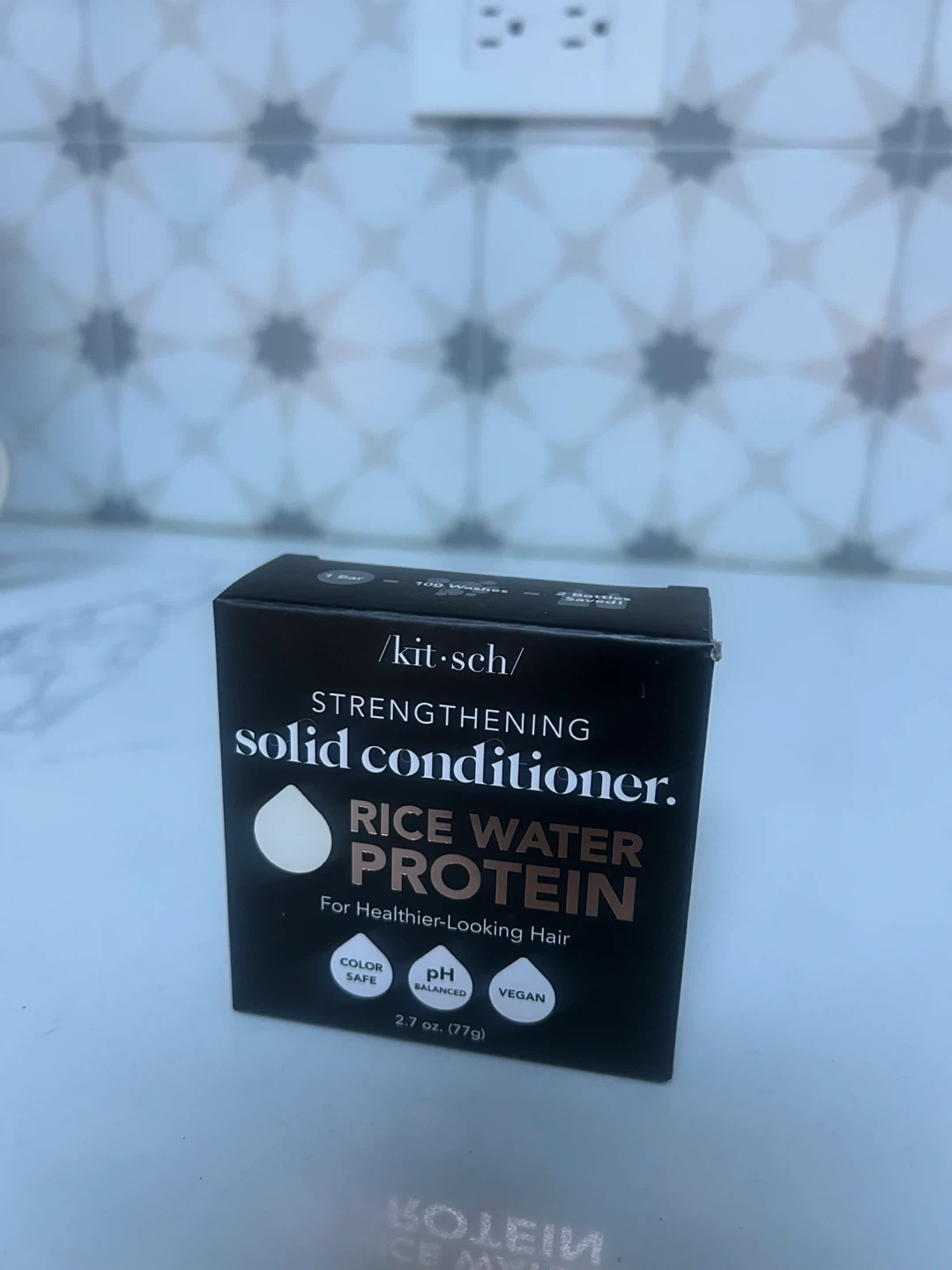 Kitsch Strengthening Solid Conditioner with Rice Water Protein. For healthier-looking hair. Color safe, pH balanced, and vegan. 2.7 oz. (77g) bar.