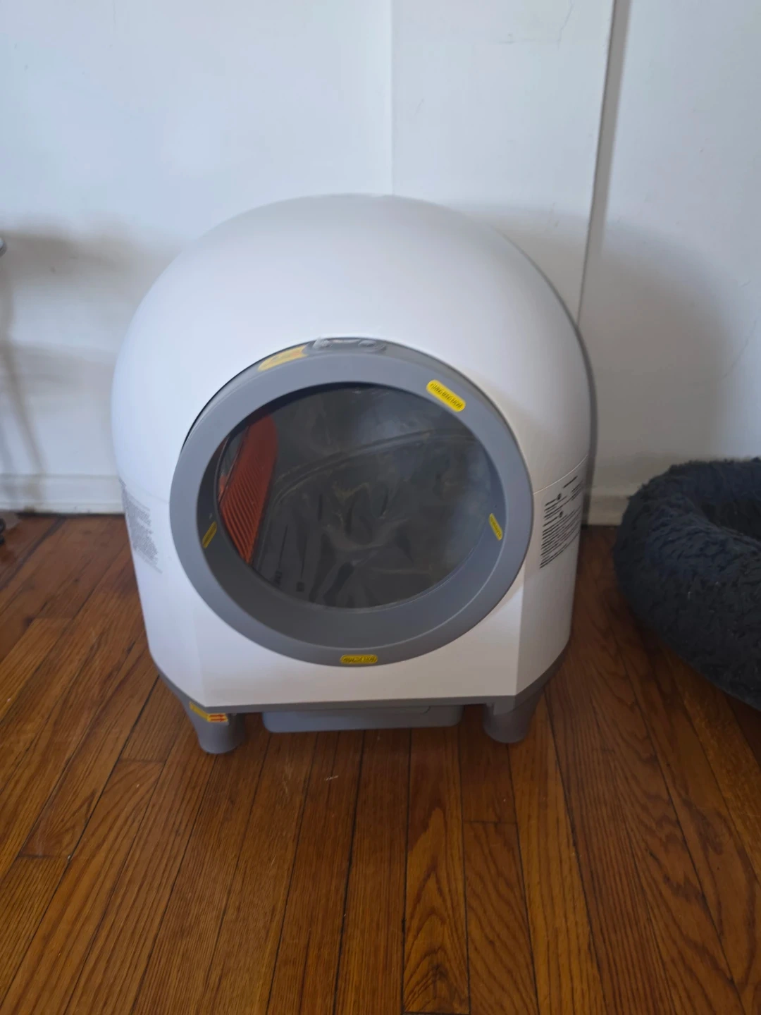 This automatic self-cleaning litter box is a game-changer for pet owners! It's designed to keep your home fresh and odor-free. It's a great solution for busy households and ensures a clean space for your feline friend. The unit is white with gray accents.
