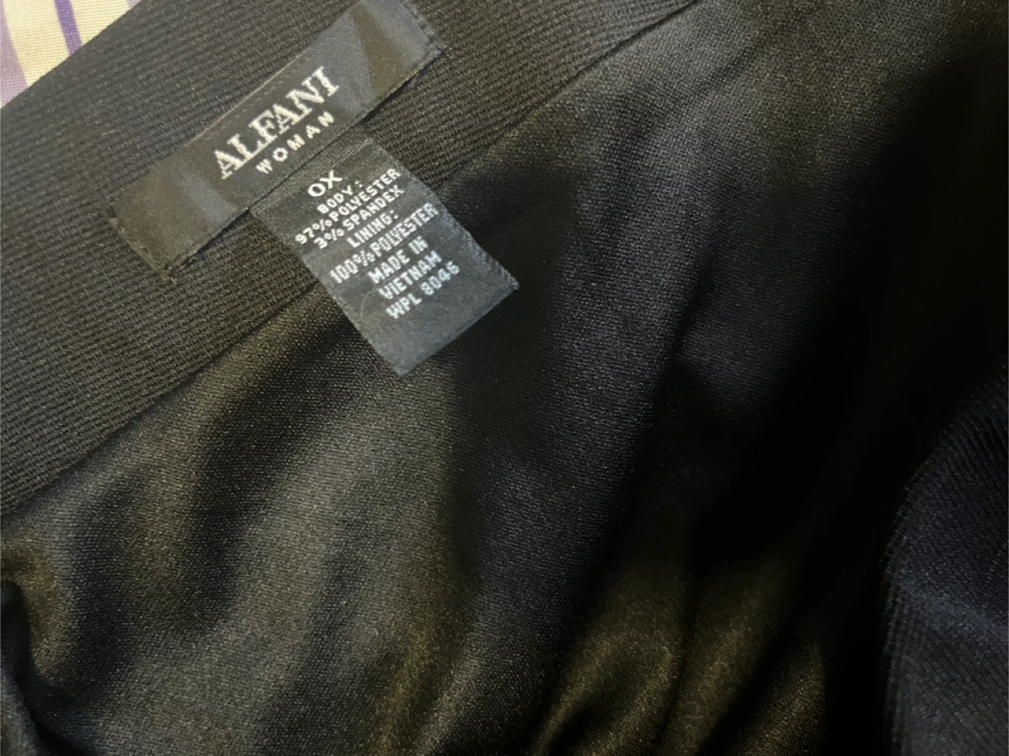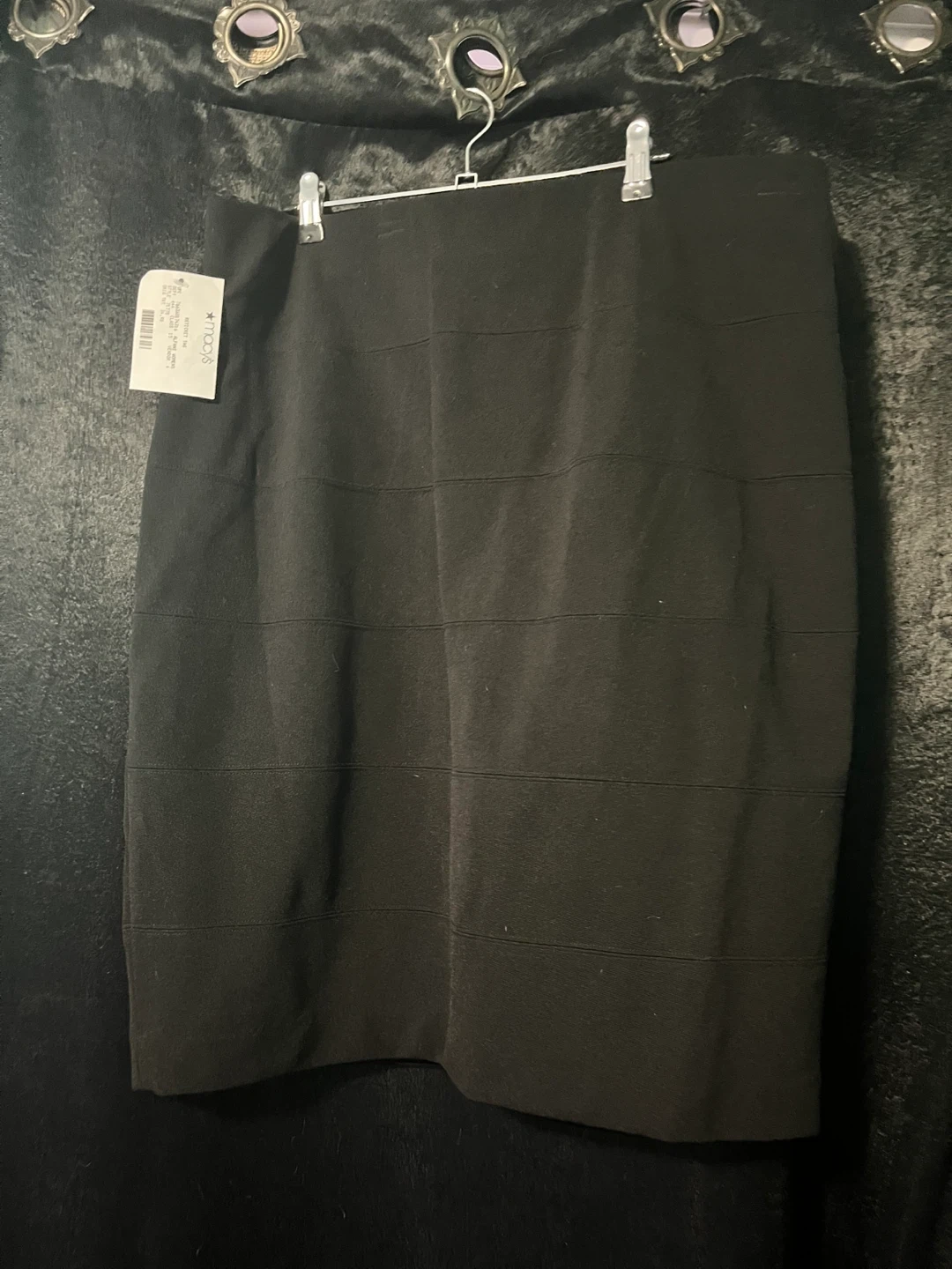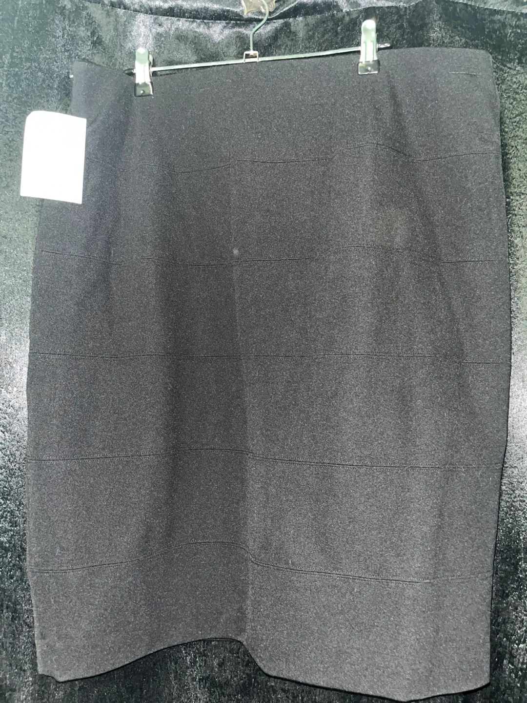 Selling new Alfani Woman black skirt in size 2X. It's made of 97% polyester and 3% spandex for the body, with a 100% polyester lining. A stylish and comfortable addition to any wardrobe