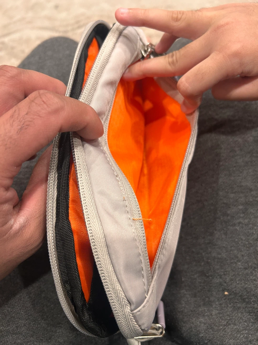 Light Grey Pouch Bag with Orange Interior