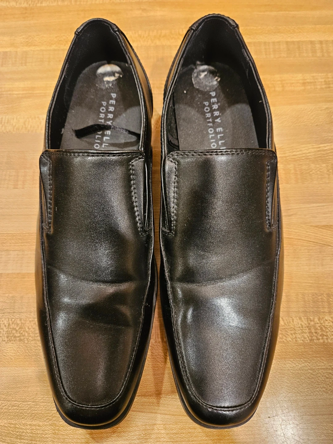 Selling a pair of Perry Ellis Portfolio dress shoes in black. They are a size 8. These shoes have been worn, but still have plenty of life left in them!