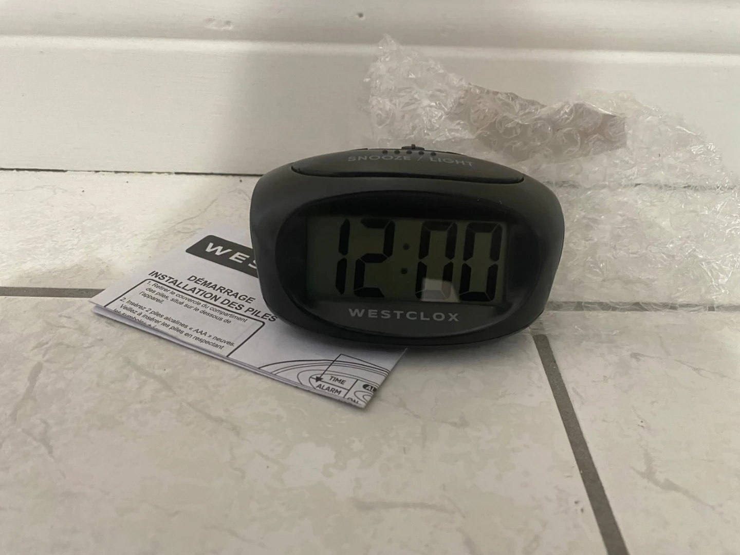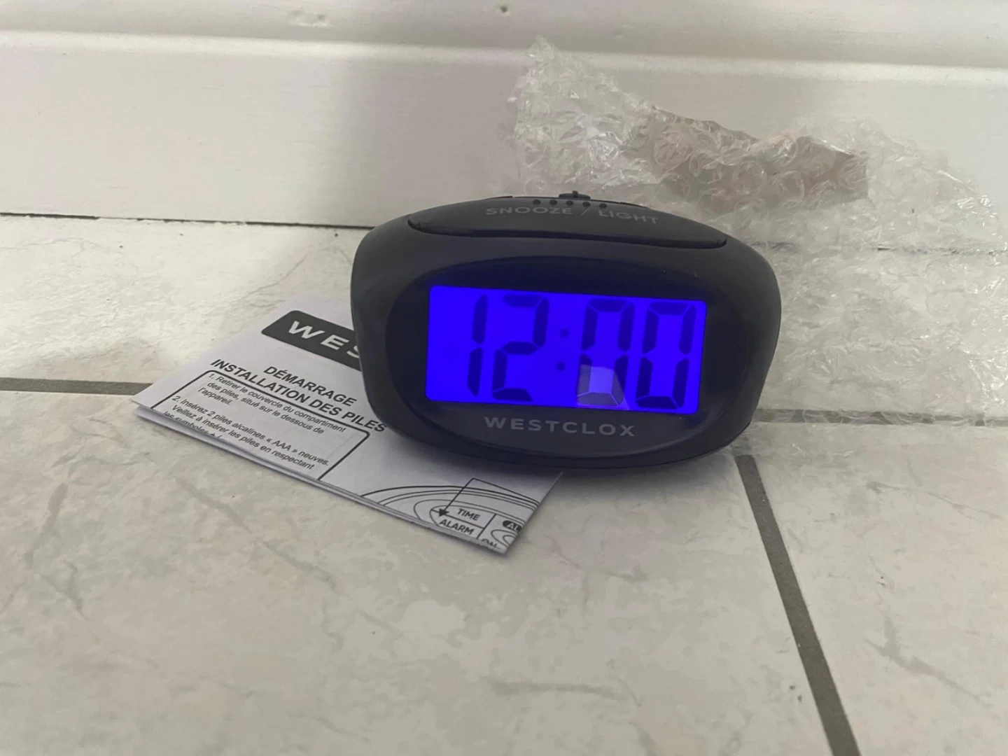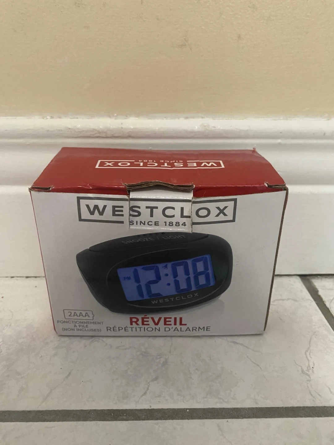 This is a Brand New Westclox digital alarm clock. It features a snooze and light function. Box only opened to show working condition! Requires 2 AAA batteries, not included. Extra $1.00