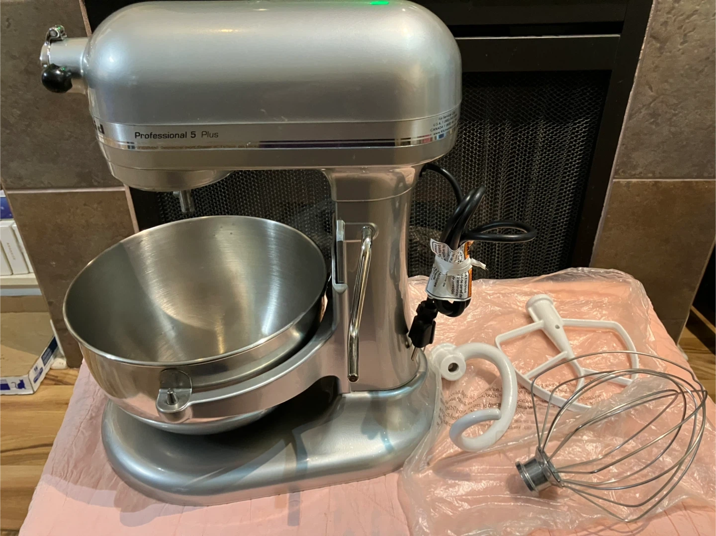 Selling a KitchenAid Professional 5 Plus stand mixer. It comes with the bowl, whisk, dough hook, and flat beater attachments. Ready to help with all your baking needs!