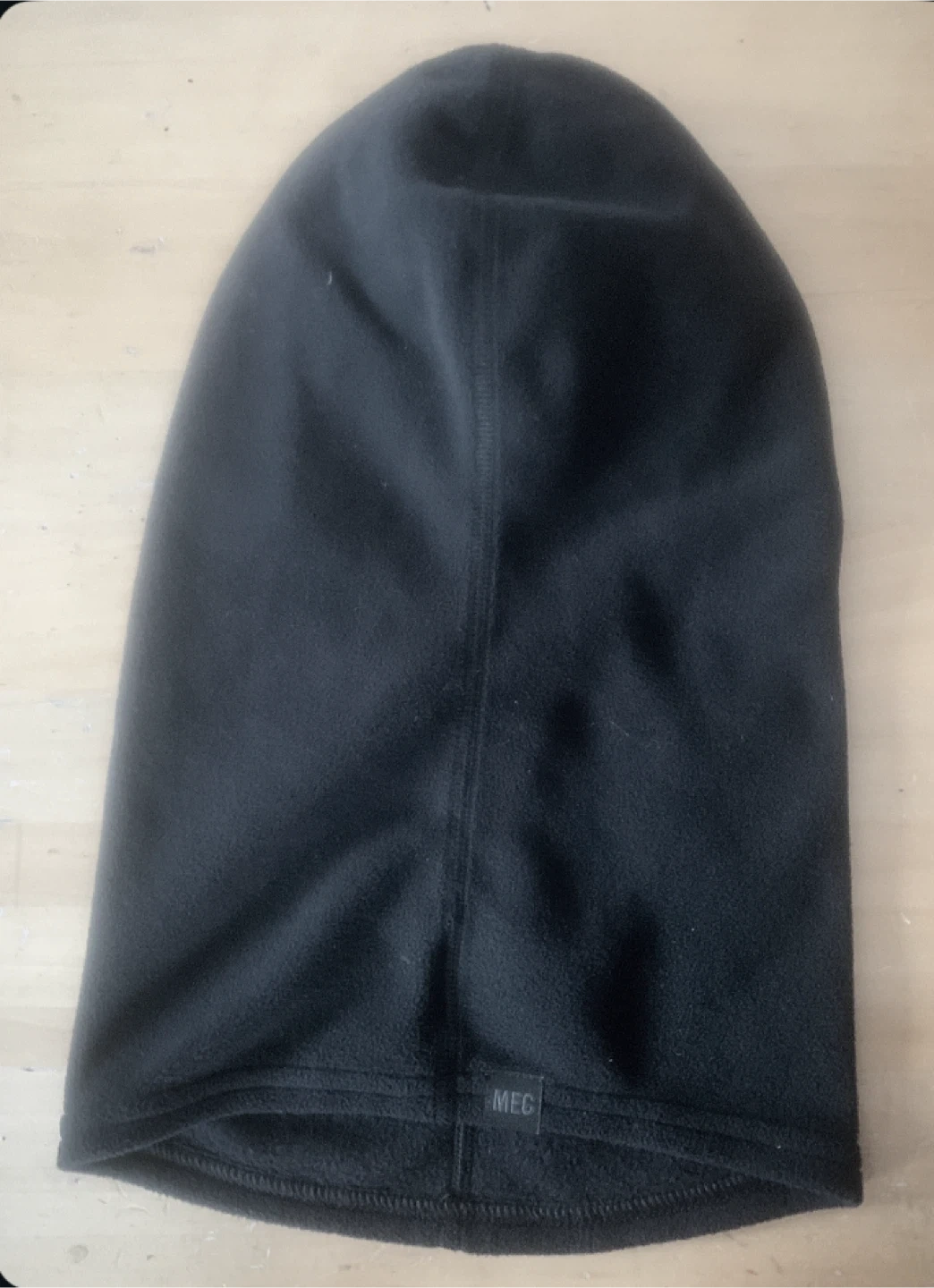 Selling a MEC balaclava in black. It's a child size S/P and made of 100% polyester. Perfect for keeping warm during outdoor activities!