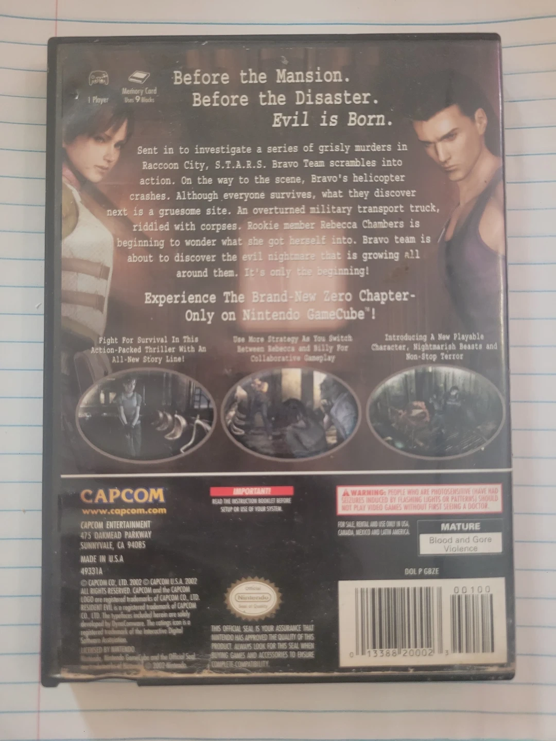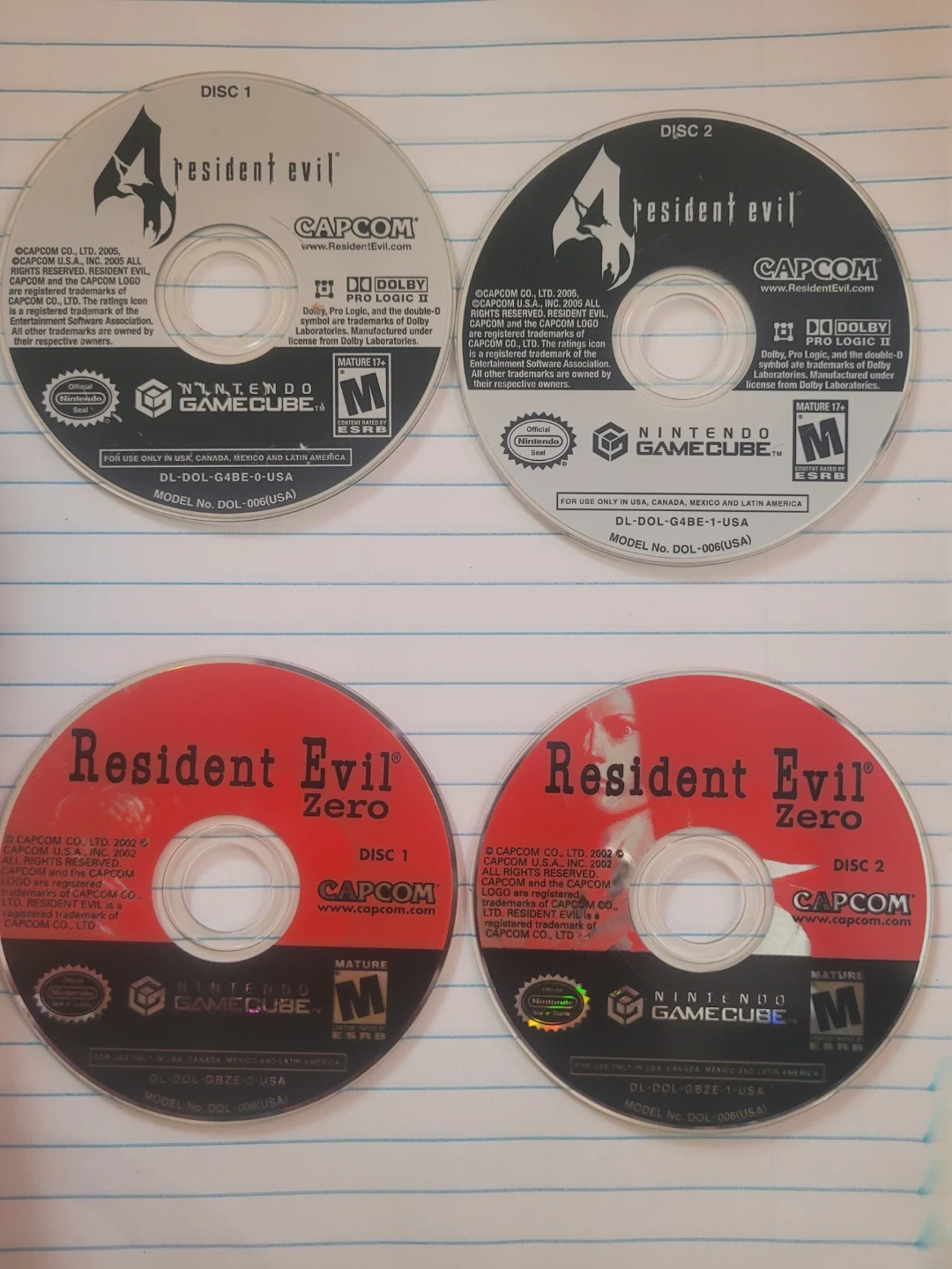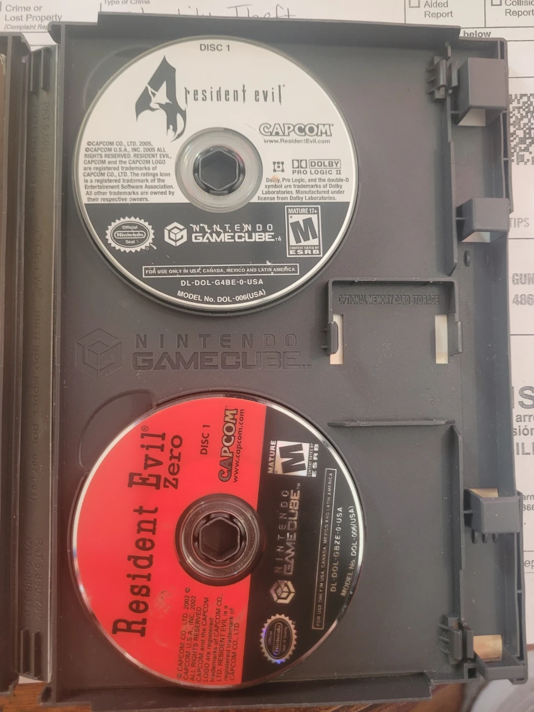 This bundle includes Resident Evil 0 and Resident Evil 4 for the Nintendo GameCube. Both games are rated M for Mature. Discs and instruction booklet are included.