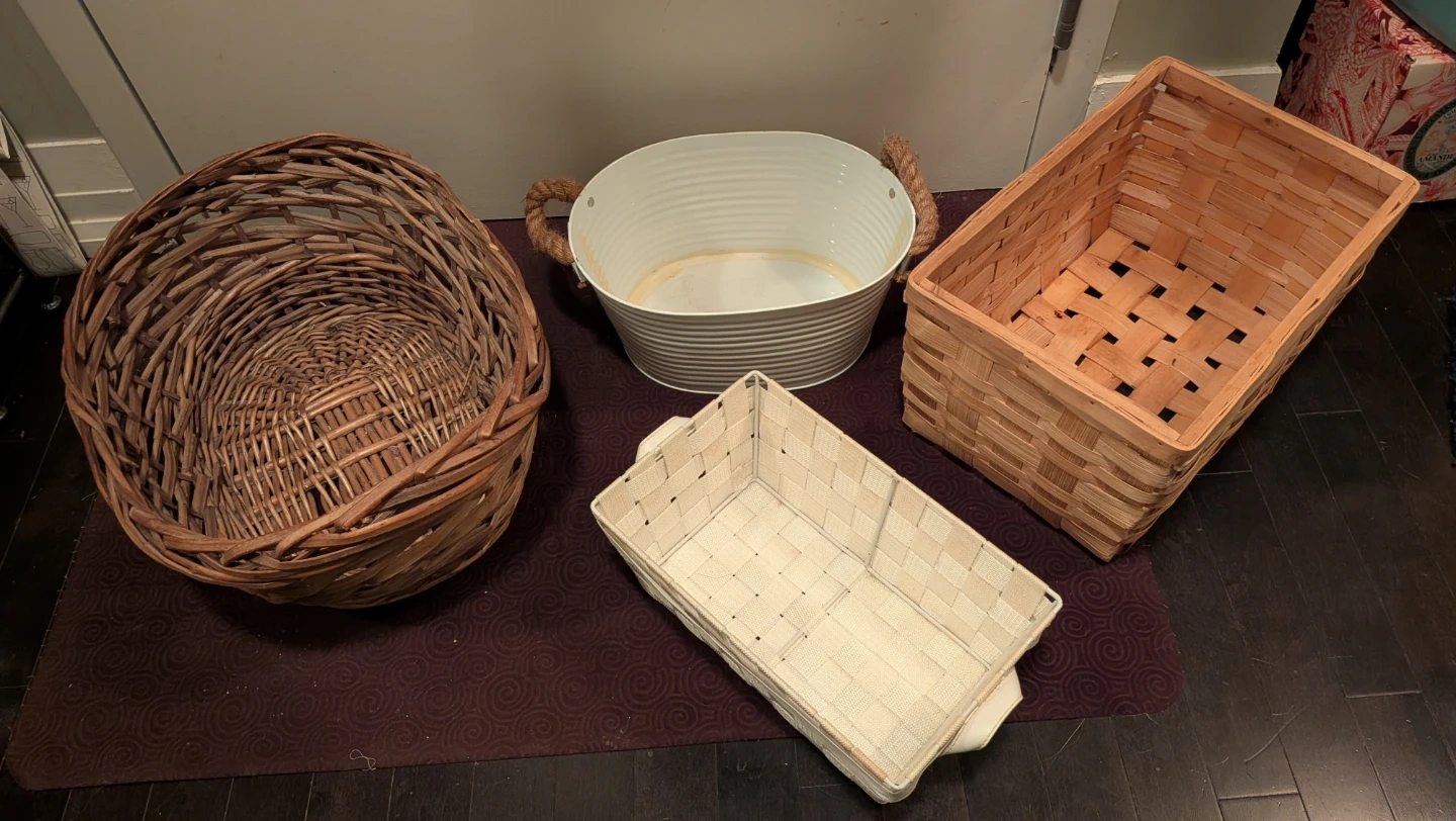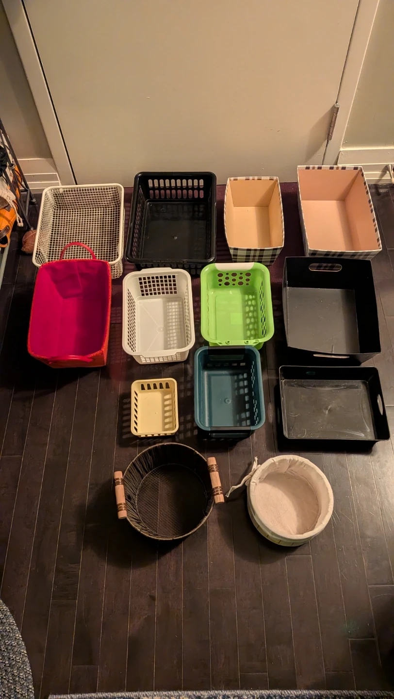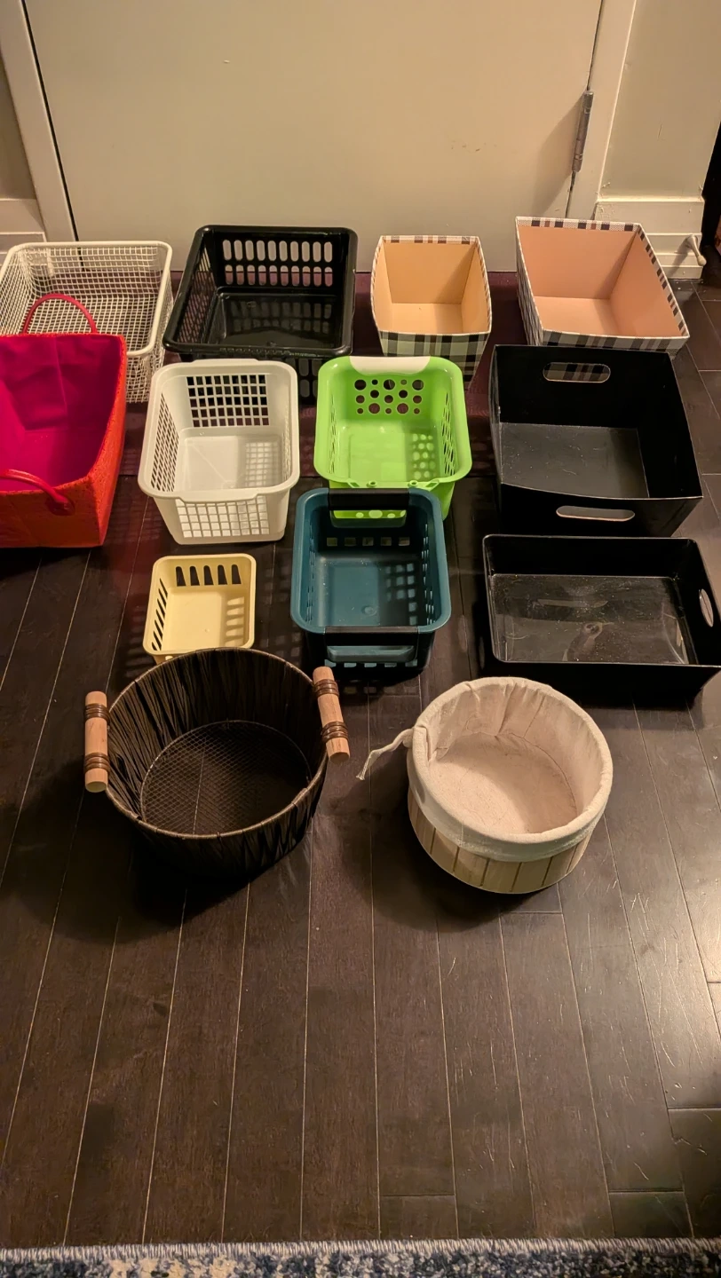 Selling a variety of storage bins and baskets! Great for organizing your home. There's a mix of colours and sizes to suit different needs. Perfect for decluttering and keeping things tidy.