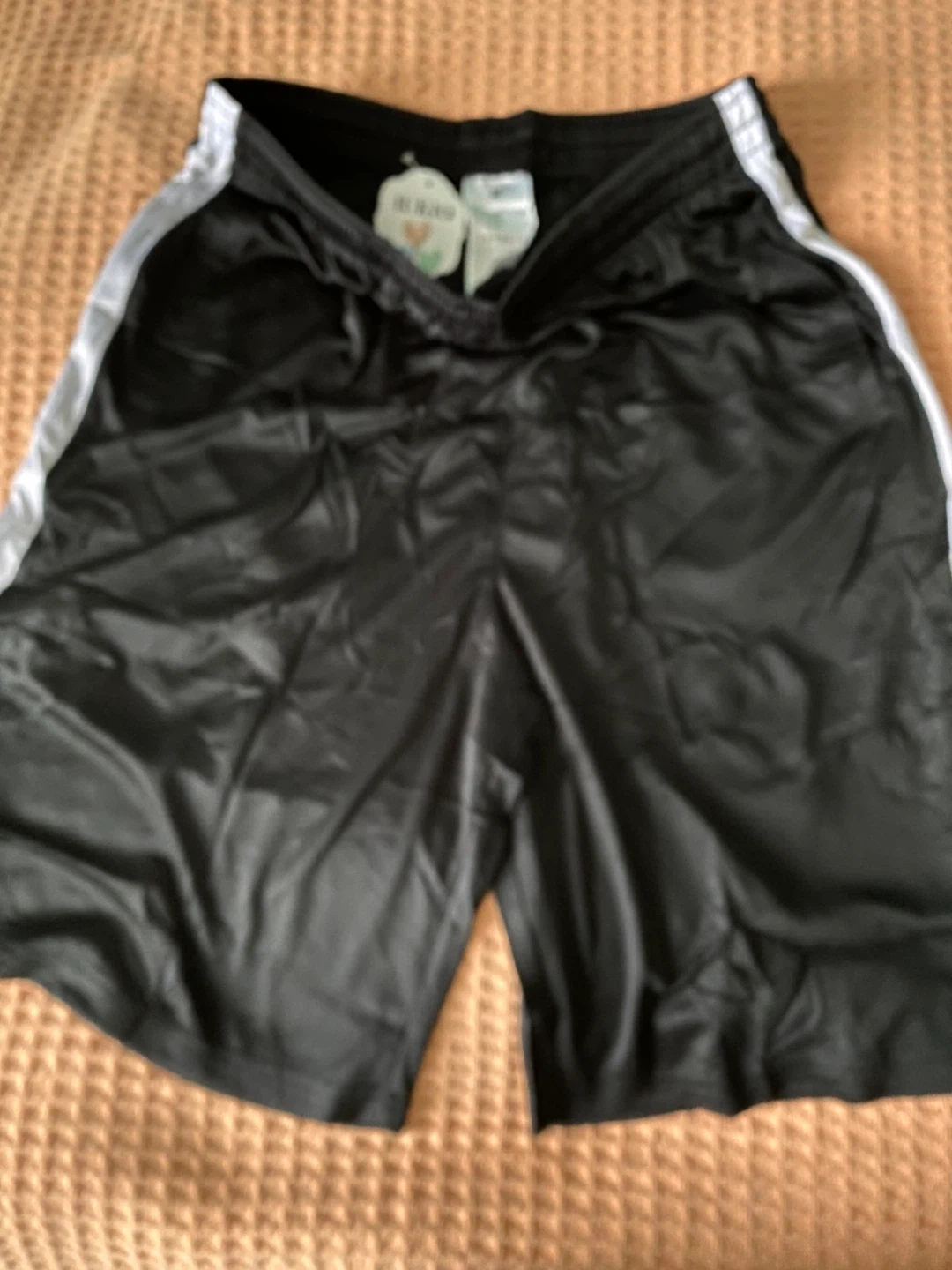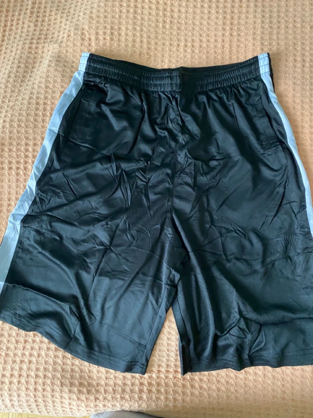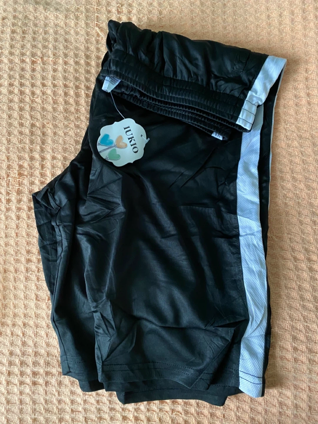 Selling a brand new pair of IUKIO men's basketball shorts in black, size medium! These shorts are perfect for the gym or just shooting hoops. They are still in the original packaging and have never been worn