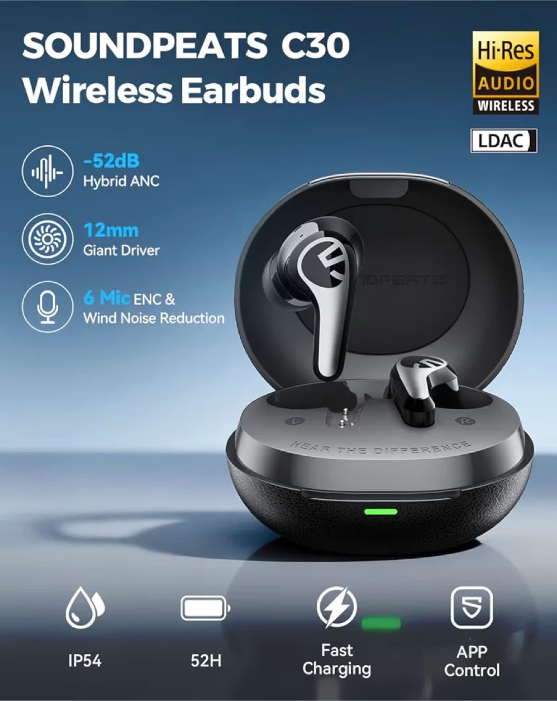 SOUNDPEATS C30 Active Noise Cancelling Wireless Earbuds