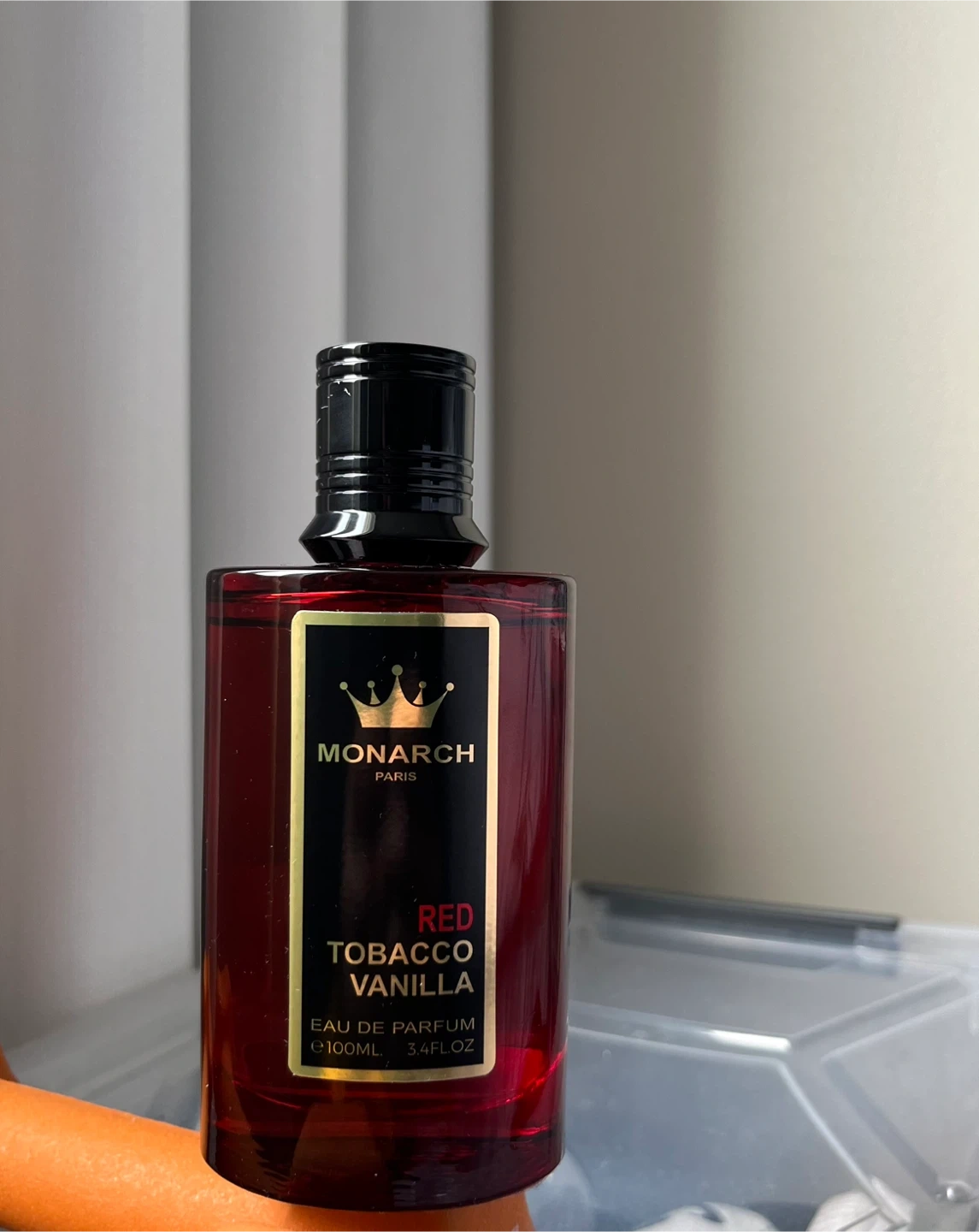 Monarch Paris Red Tobacco Vanilla Eau de Parfum. It's a 100ml bottle. This fragrance features notes of tobacco and vanilla. It's a great scent for evening wear.