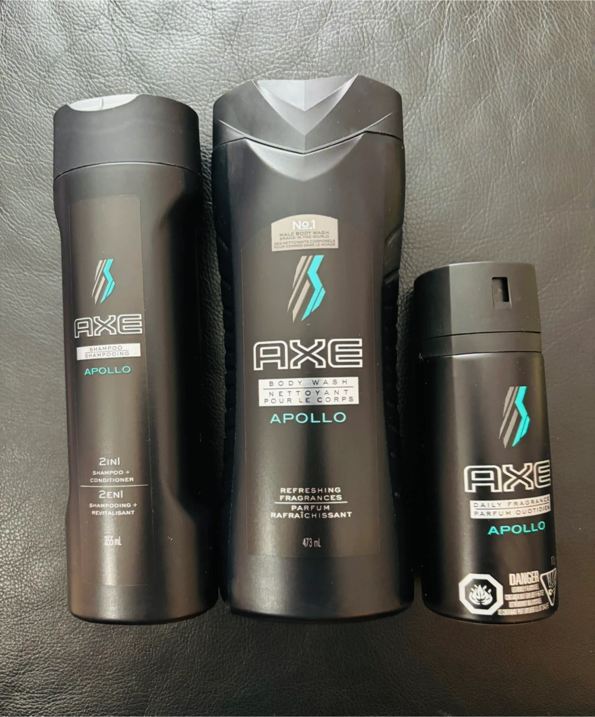 This brand new set includes Axe Apollo 2-in-1 Shampoo + Conditioner, Body Wash, and Daily Fragrance.