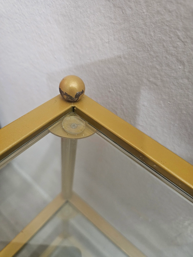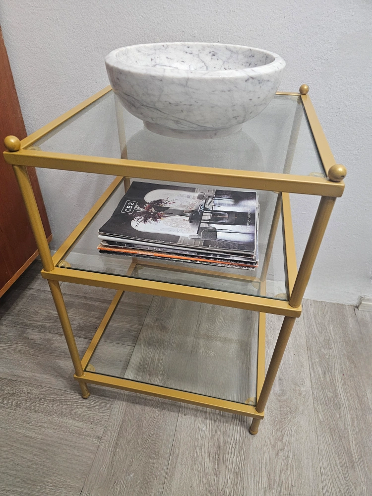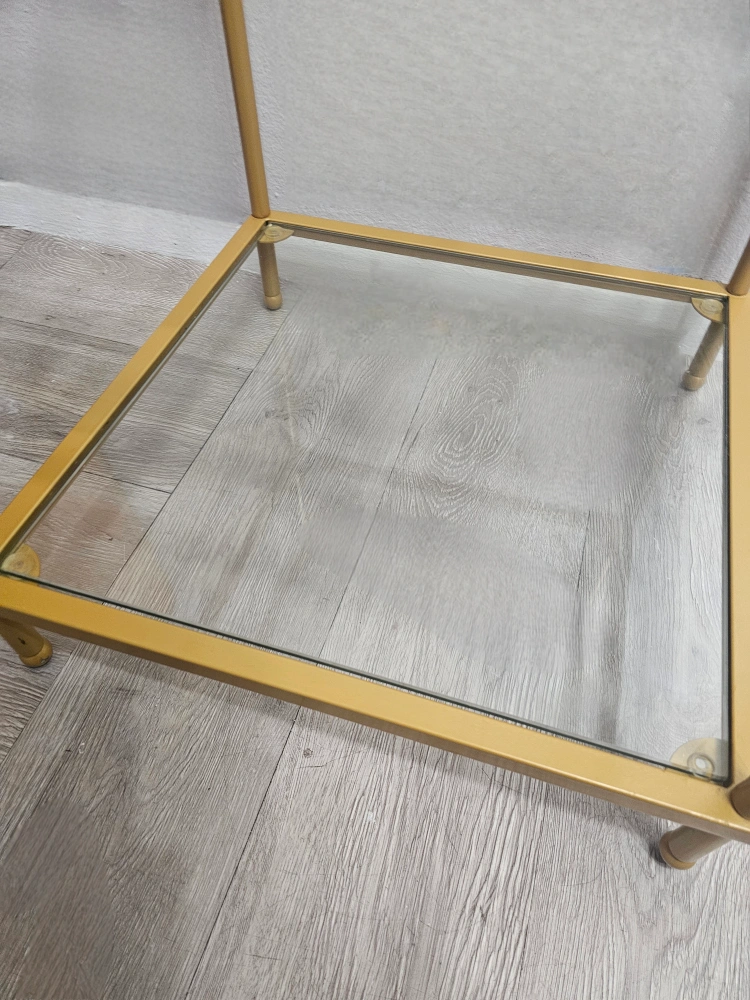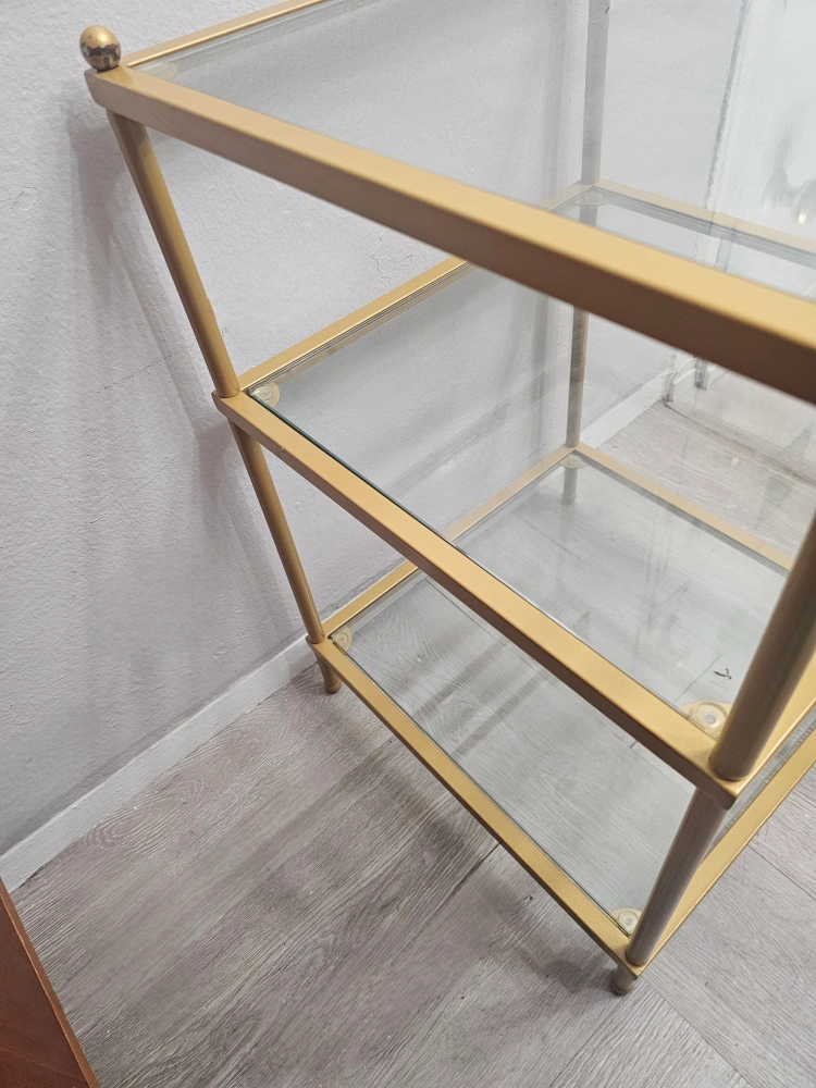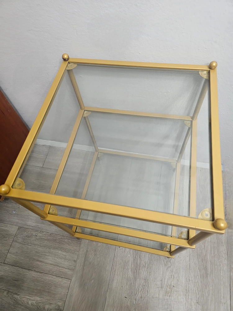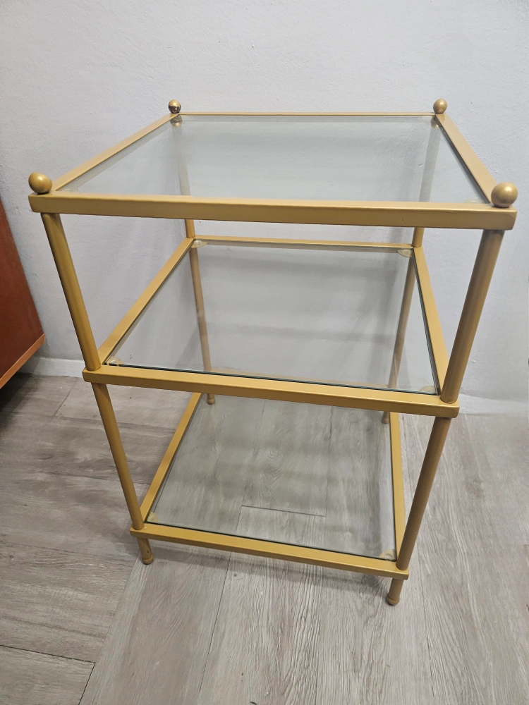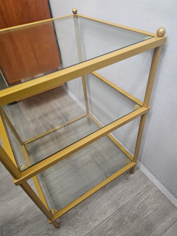 Gold Side Table w/Glass (3-Tier Shelf)-PICK UP ASAP!