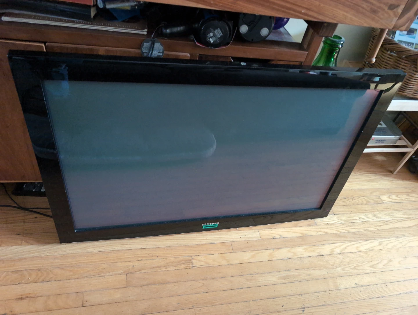 42 inch Samsung TV. Please check the images for condition. There is a small green line that runs down the left side about a fourth the way of the way over. Comes with cord, no remote. Perfect to plug your Roku or Amazon stick in for the kids sleep over during the holidays!
