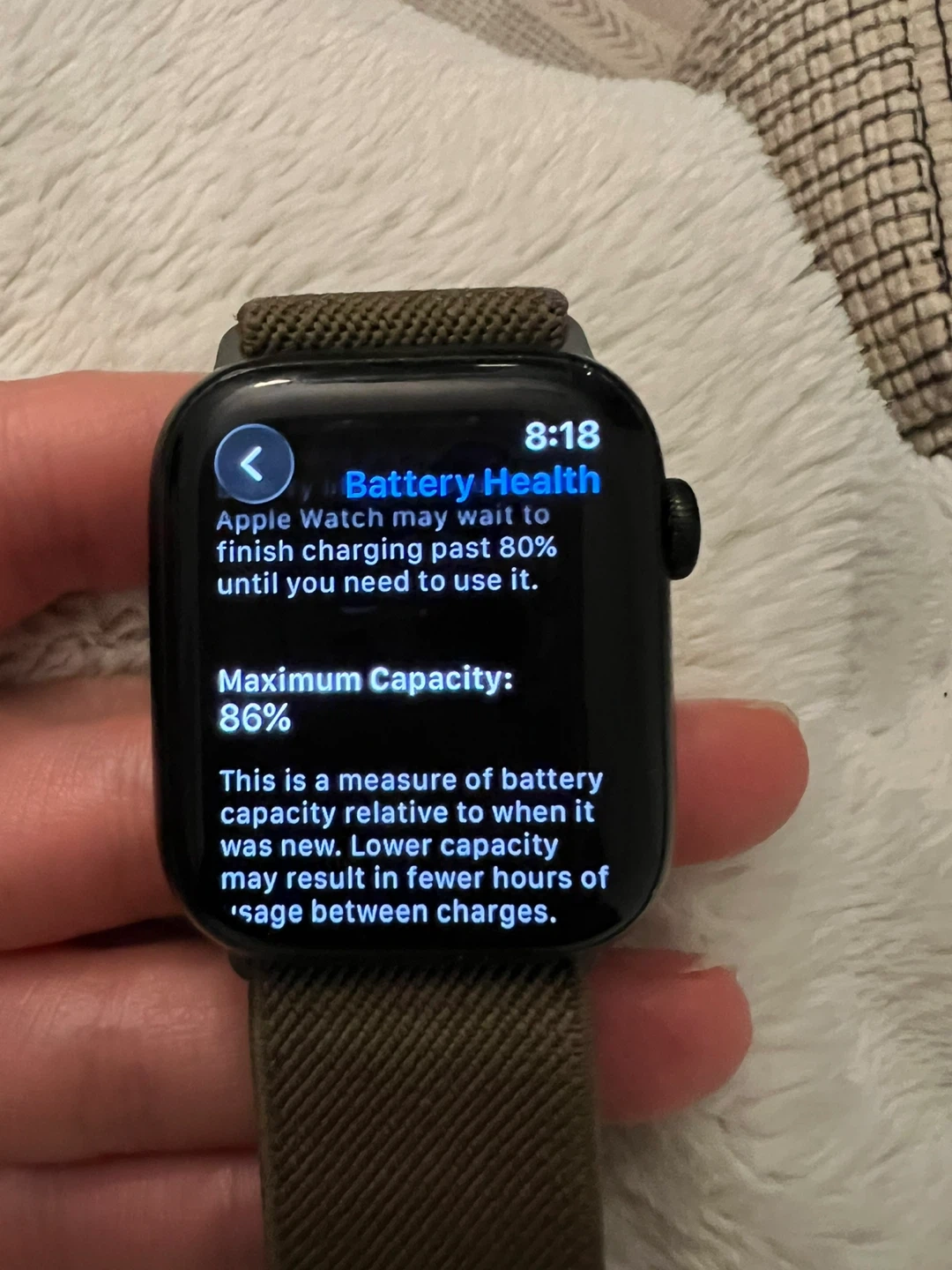Battery Health: 86% Maximum capacity. It holds a charge perfectly for a full day of use.