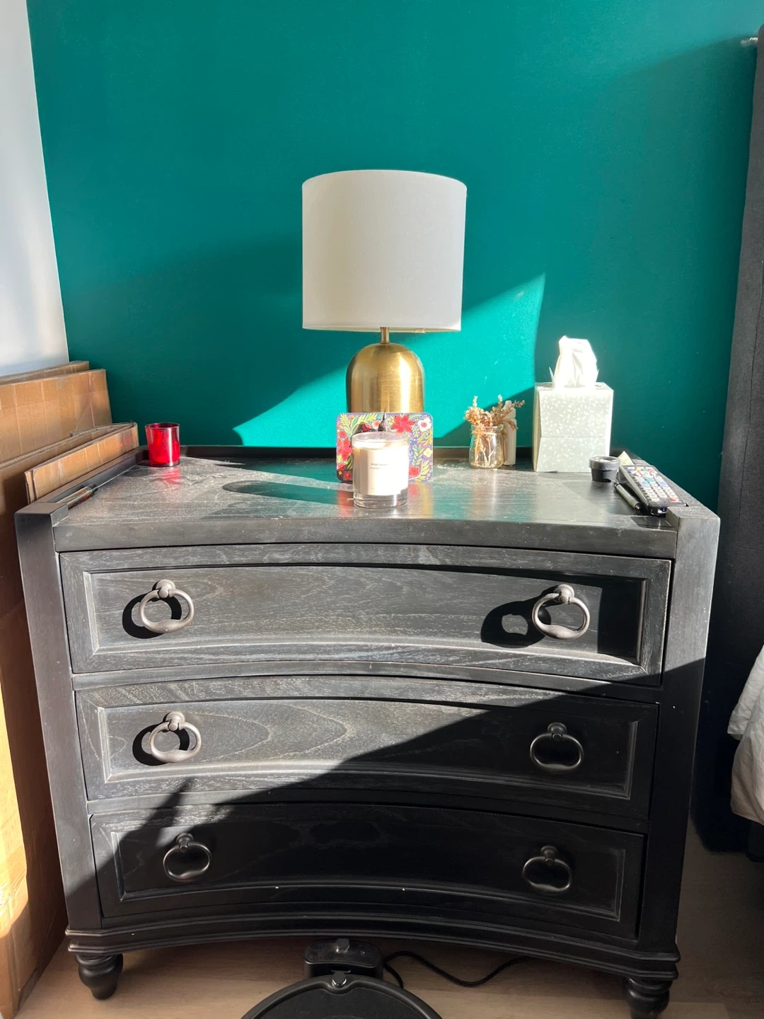 60This nightstand features a convenient charging station and wire management to keep your life tangle-free! It has three drawers for storage. Finish: Midnight Original Price: $779