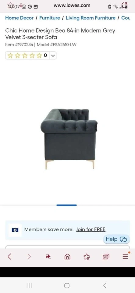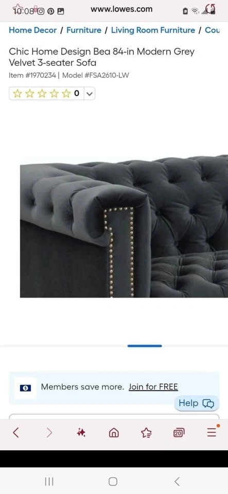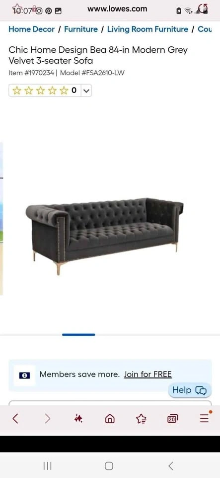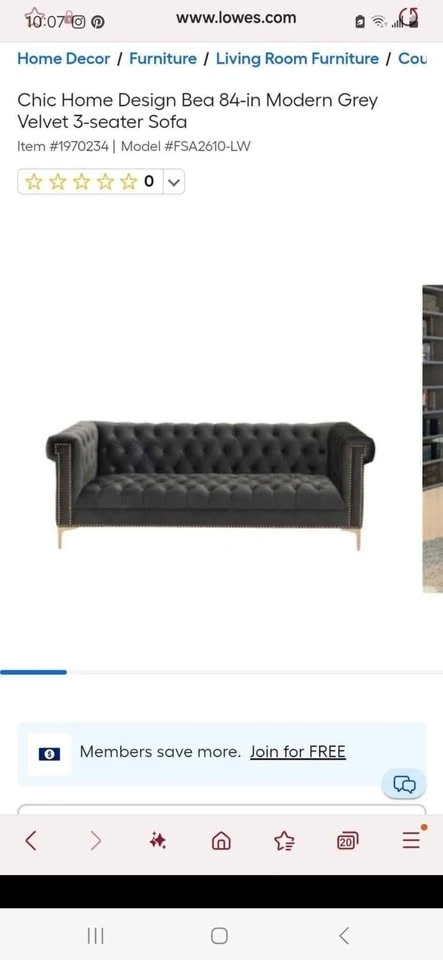 2 couches available - NEW in box. $600 EACH!! $1000 for both This gray 3 seater sofa is button tufted velvet with contrasting goldtone nailhead trim accenting rolled arms, high density foam padding, and sturdy Y-shaped coordinating goldtone chrome metal legs. Dimensions in photos You will need a box truck or pickup truck to transport - box is approx 8 ft long Cash only on pickup