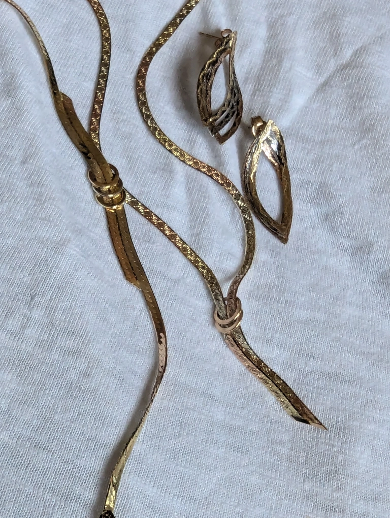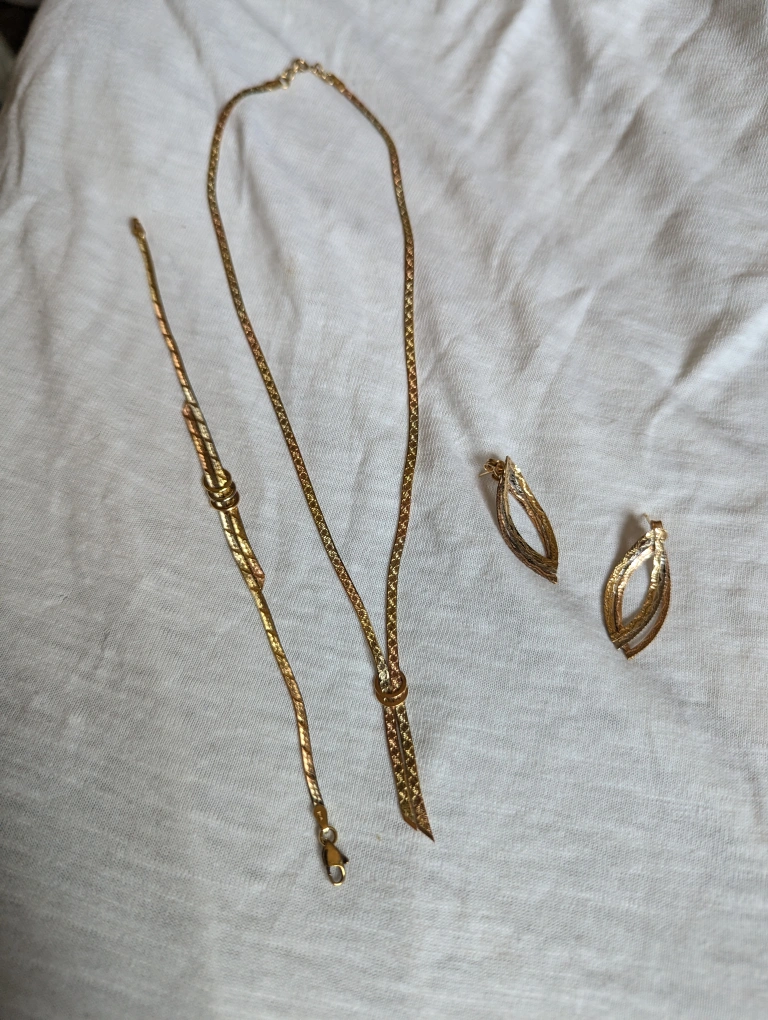 14k Gold necklace, Bracelet and Dangle Earrings set tri gold