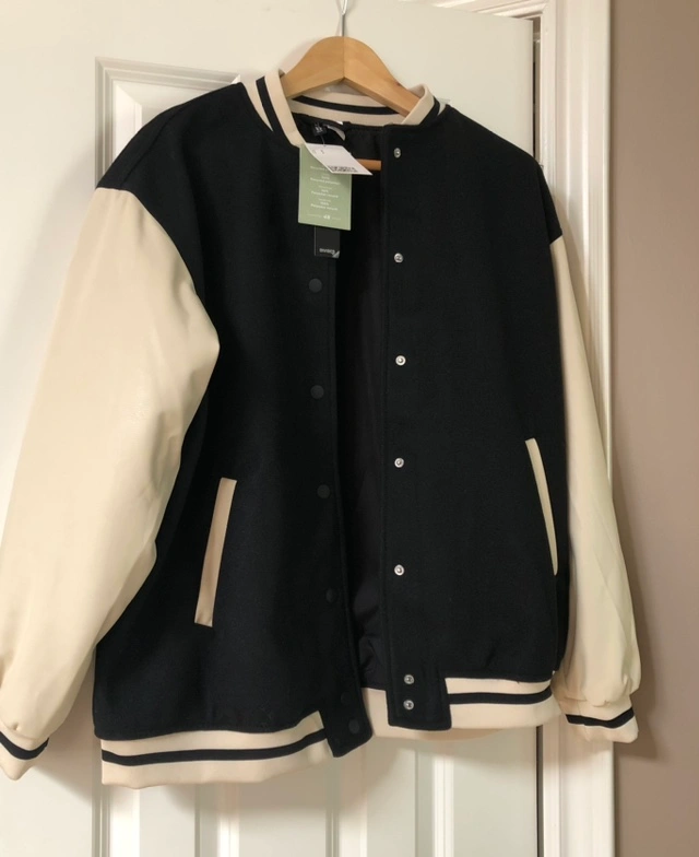 NEW H&M Divided Black and White Vegan Varsity Jacket