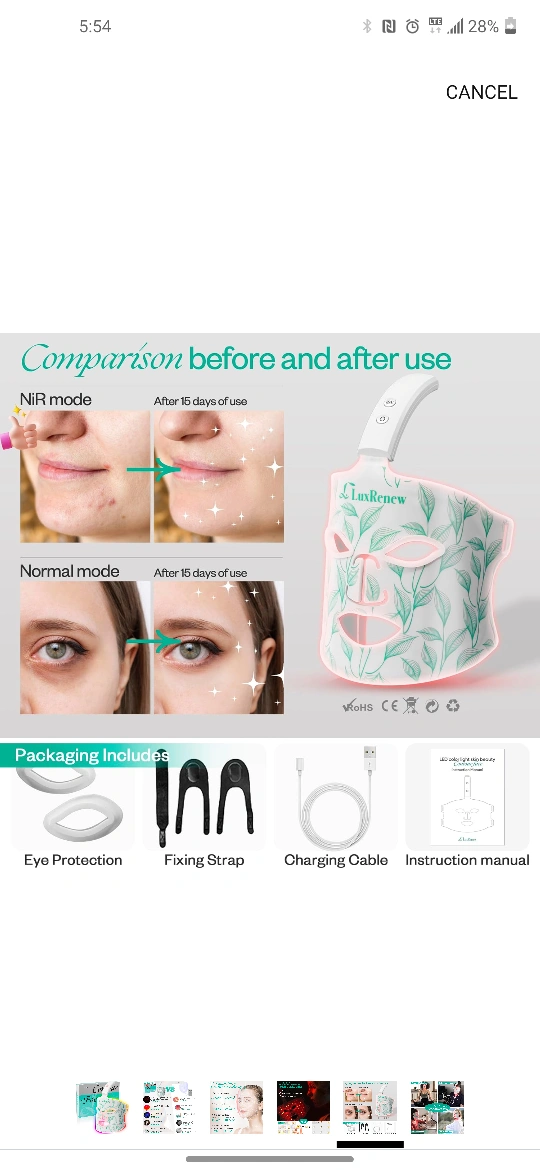 This LED mask uses a combination of red and near-infrared light to help improve the appearance of skin. 8 colors of lights.