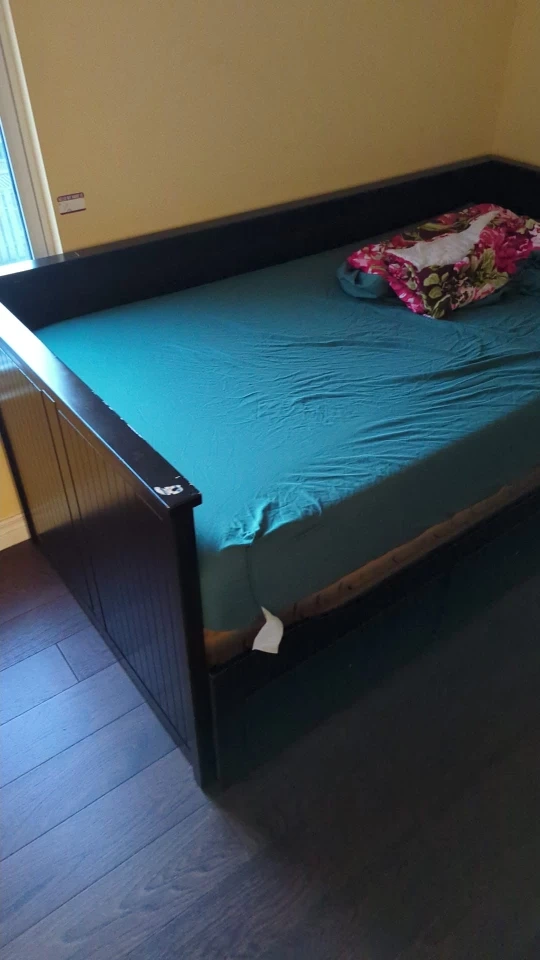 This bed is in good condition. It has been disassembled a bit but can be reassembled without too much difficulty. A twin mattress also available for free. Must be picked up.