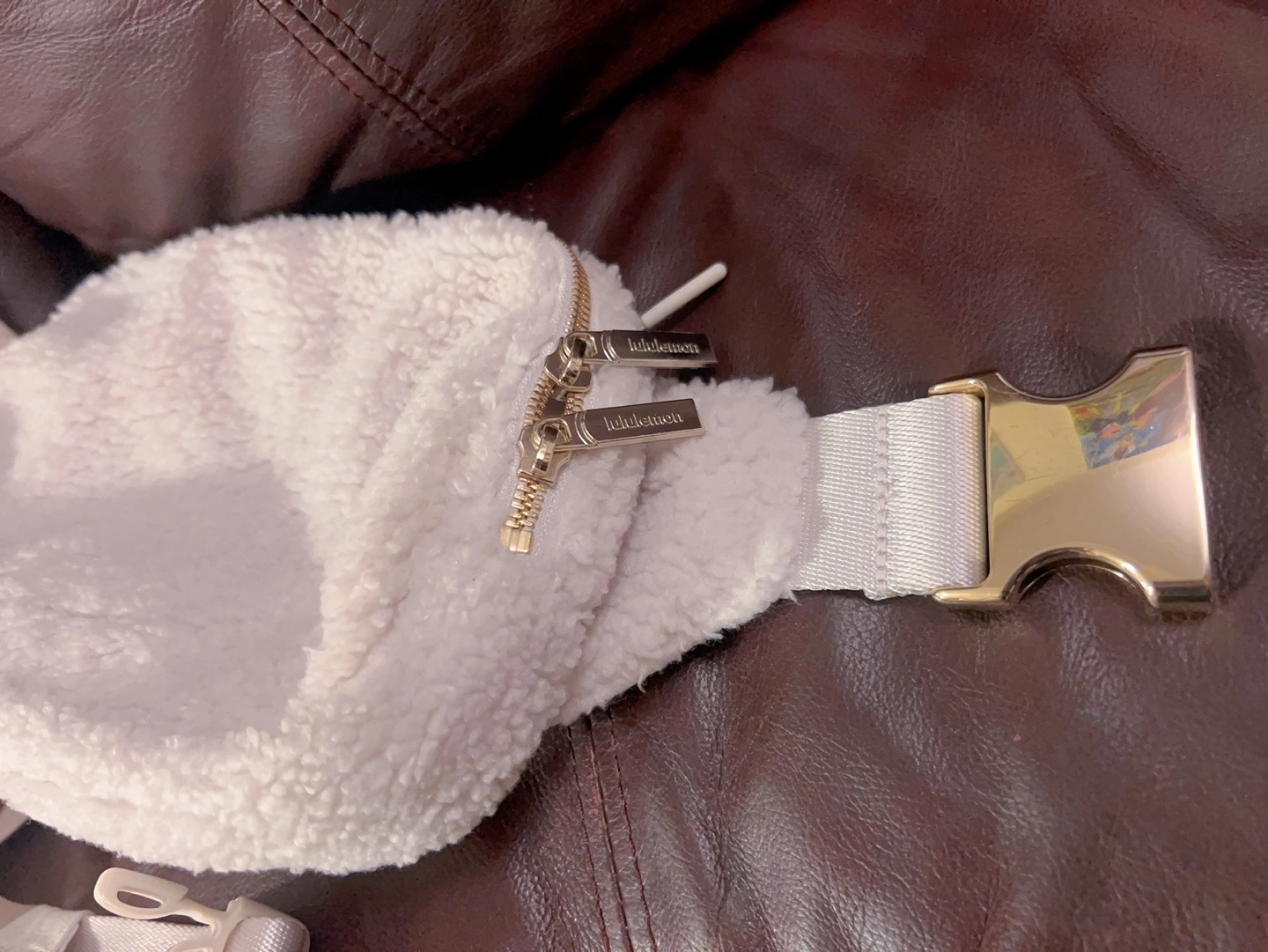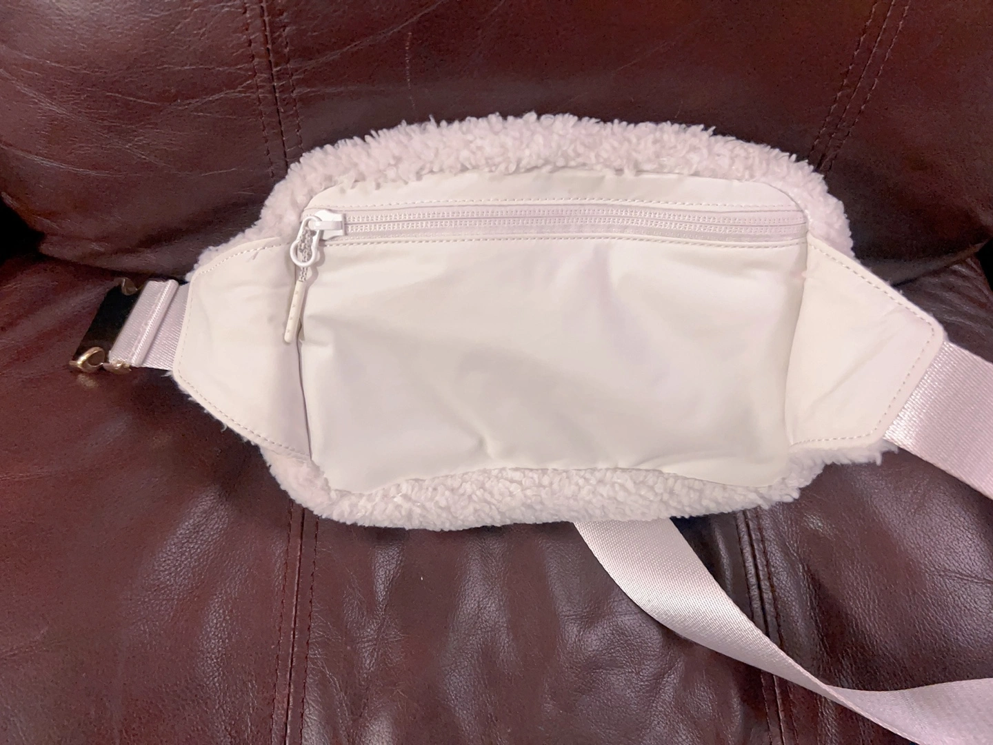 White sherpa belt bag with adjustable strap and gold hardware. Got it earlier this year and used a few times.
