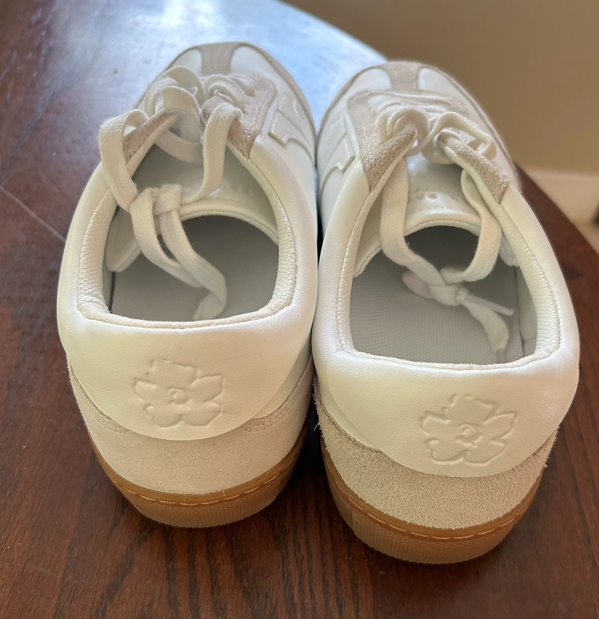 white/off-white leather panelled design suede panelling logo patch to the side logo-debossed tongue branded heel counter round toe front lace-up fastening branded insole contrasting rubber sole