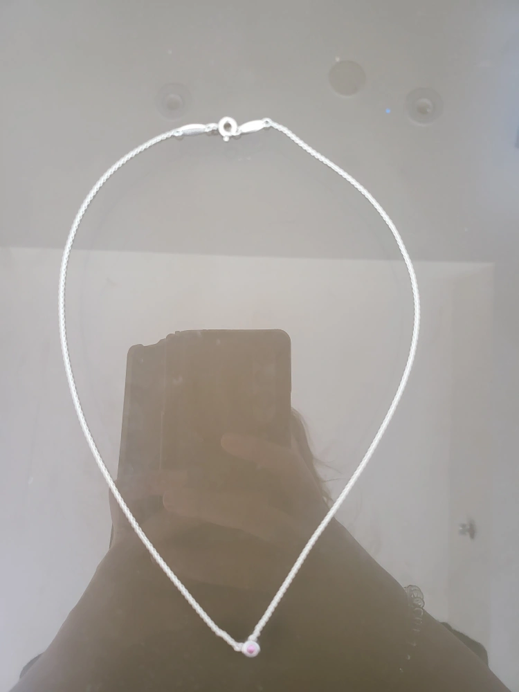 This is a beautiful Tiffany & Co. 925 silver chain necklace. It has a small pink saphire charm on the end. The chain is about 18 inches long.