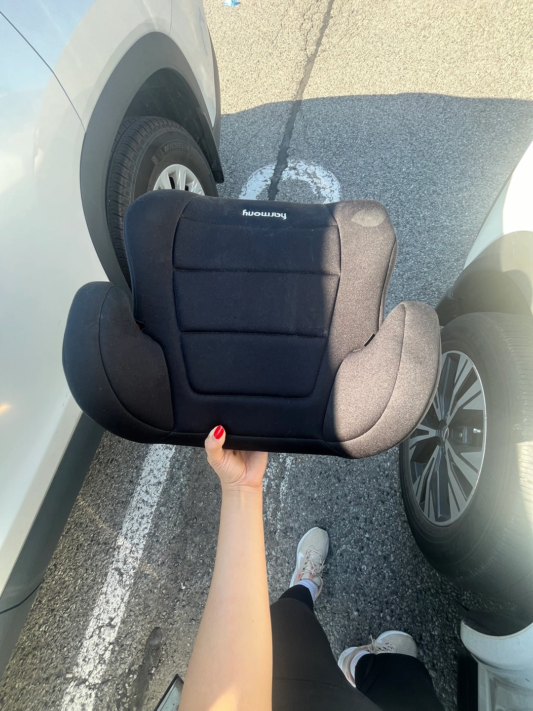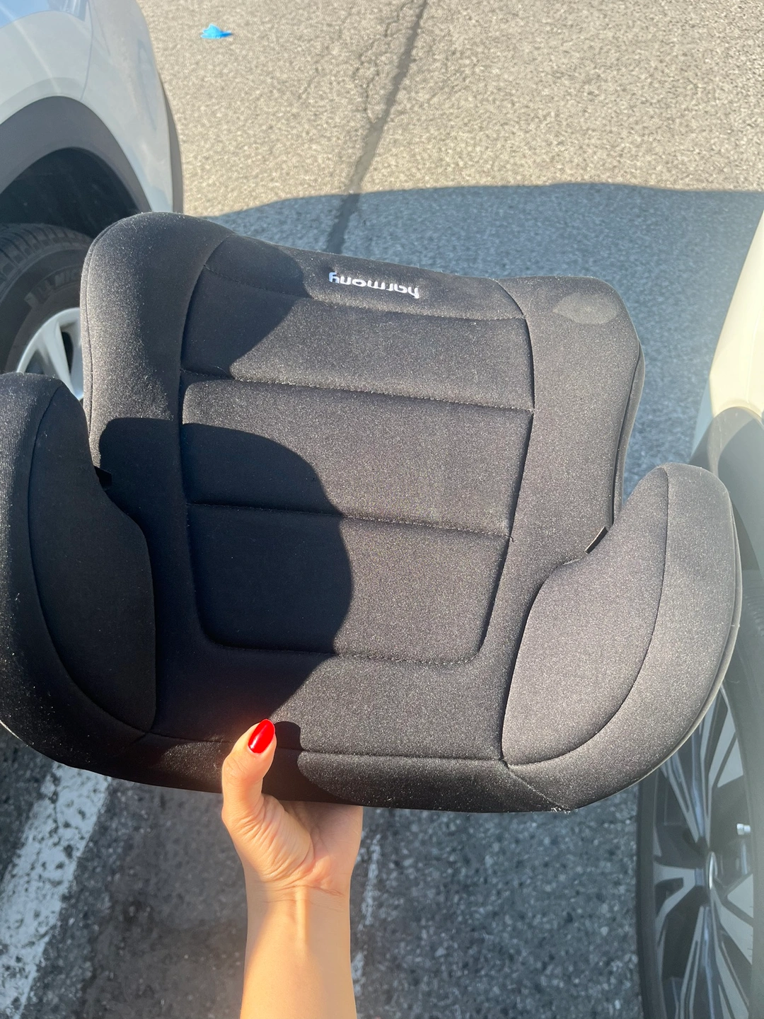This booster seat is designed for children weighing between 40 and 100 pounds. It features a high back for added support and safety. The booster seat is in good condition.